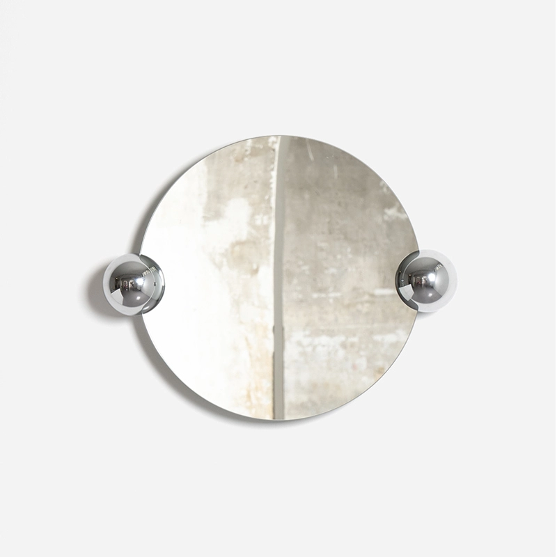 zamak chromé, feutre, miroir argenté, hêtre massif