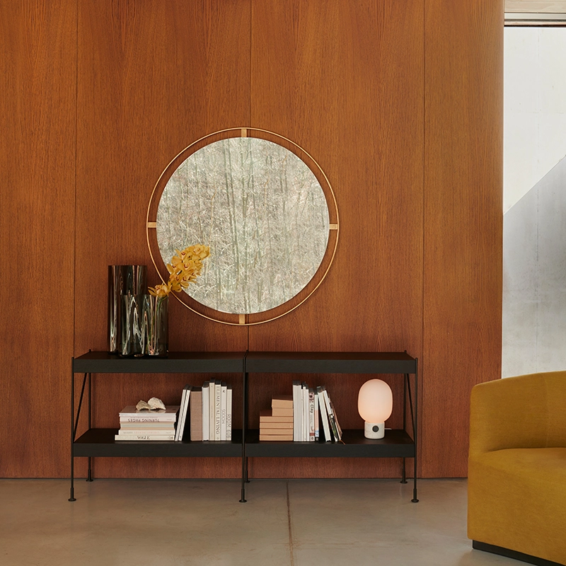 Nimbus, un miroir simple et épuré en laiton et en verre réfléchissant léger, qui définit un espace avec un sa forme ronde à la fois sophistiquée et apaisante. Les miroirs ne sont pas seulement fonctionnels : depuis des siècles, ils reflètent le style d’une époque.