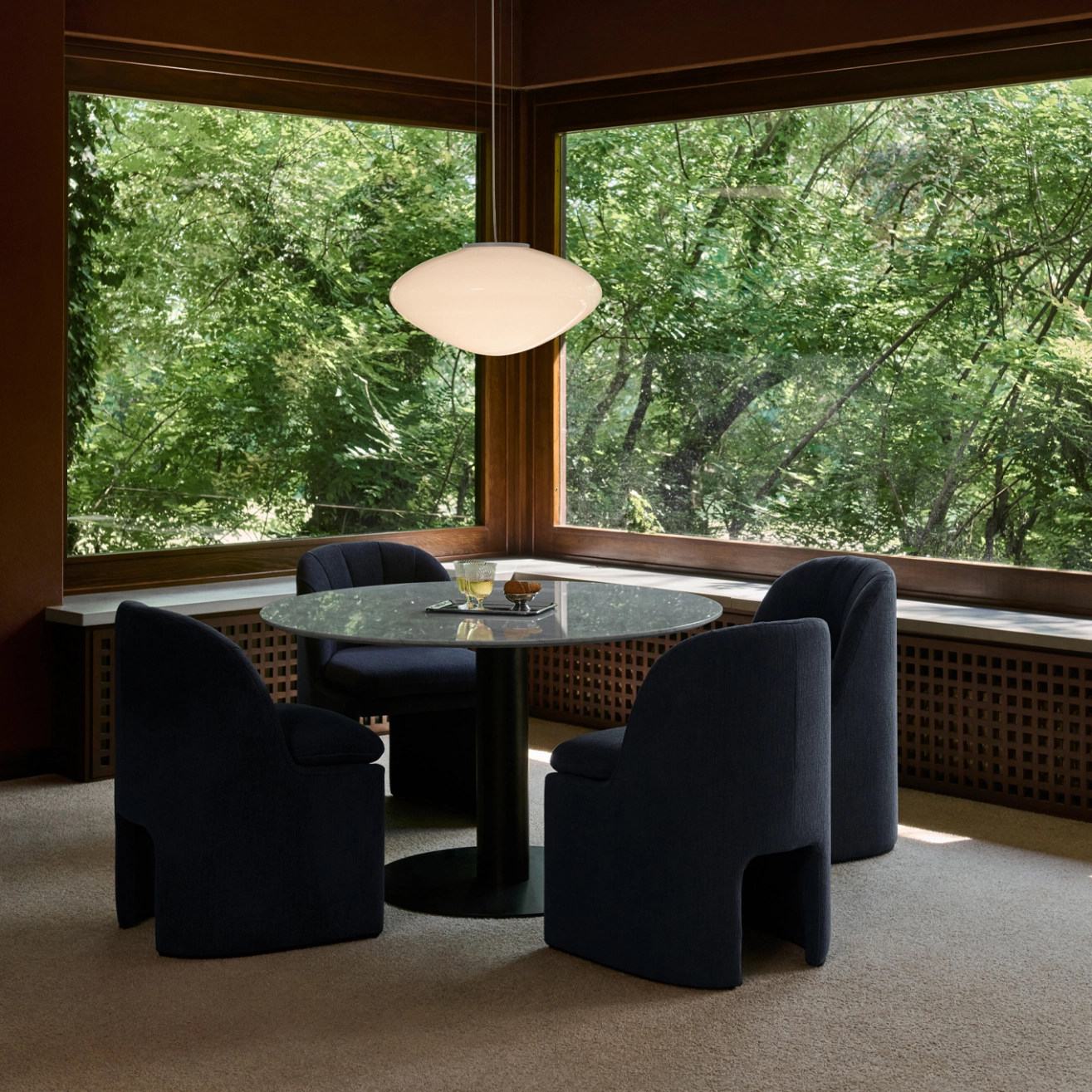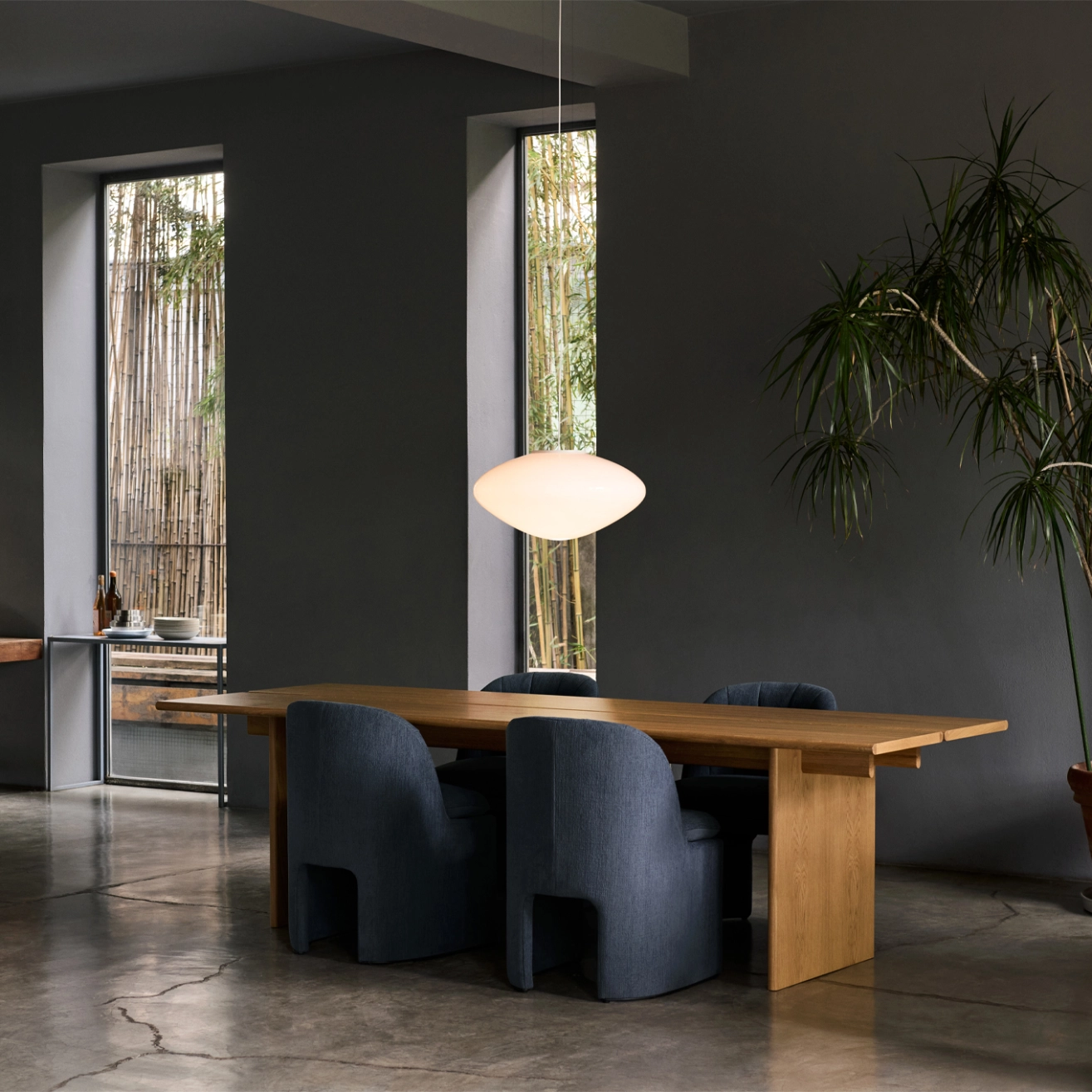 La suspension Mist AP20, dessinée par All the Way to Paris pour &Tradition, se distingue par son globe en verre soufflé à la bouche, dont la surface légèrement opaline diffuse une lumière douce et diffuse. Suspendue avec grâce, elle semble flotter dans l’air tel un nuage lumineux, apportant une atmosphère apaisante et chaleureuse. Idéale au-dessus d’une table à manger, d’un comptoir ou d’un espace de réception, la Mist AP20 combine légèreté visuelle et présence sculpturale. Sa silhouette simple mais expressive illustre parfaitement la rencontre entre la maîtrise artisanale et une vision du design épuré, capable de sublimer aussi bien un intérieur privé qu’un cadre professionnel.
