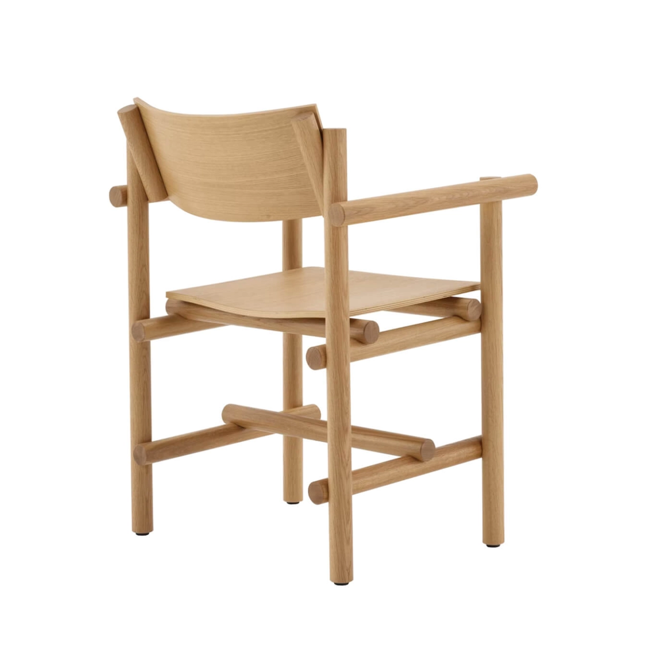 Piètement bois massif, finition chêne rouvre naturel, assise et dossier mulitiplis cintré, placage bois