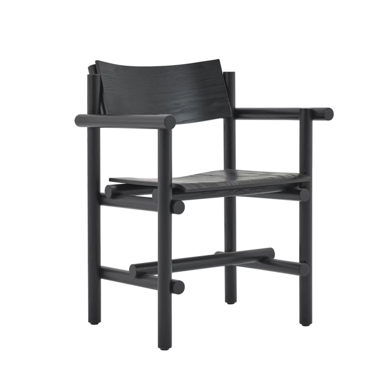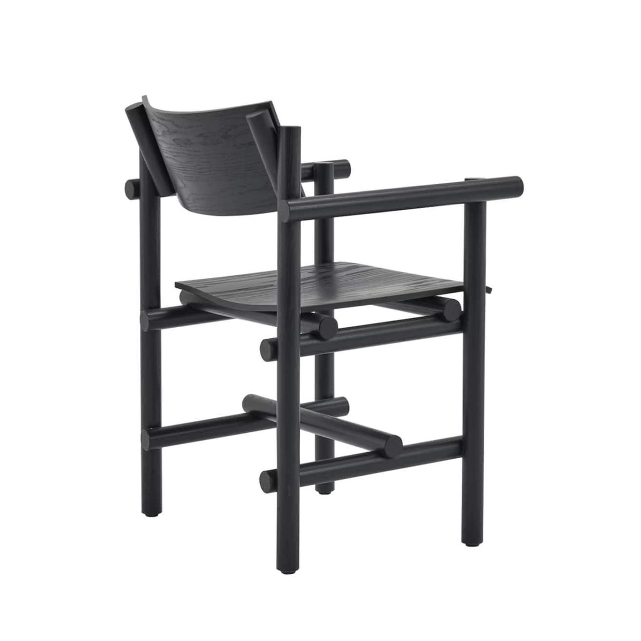 Piètement bois massif, finition frêne effet ébène, assise et dossier mulitiplis cintré, placage bois