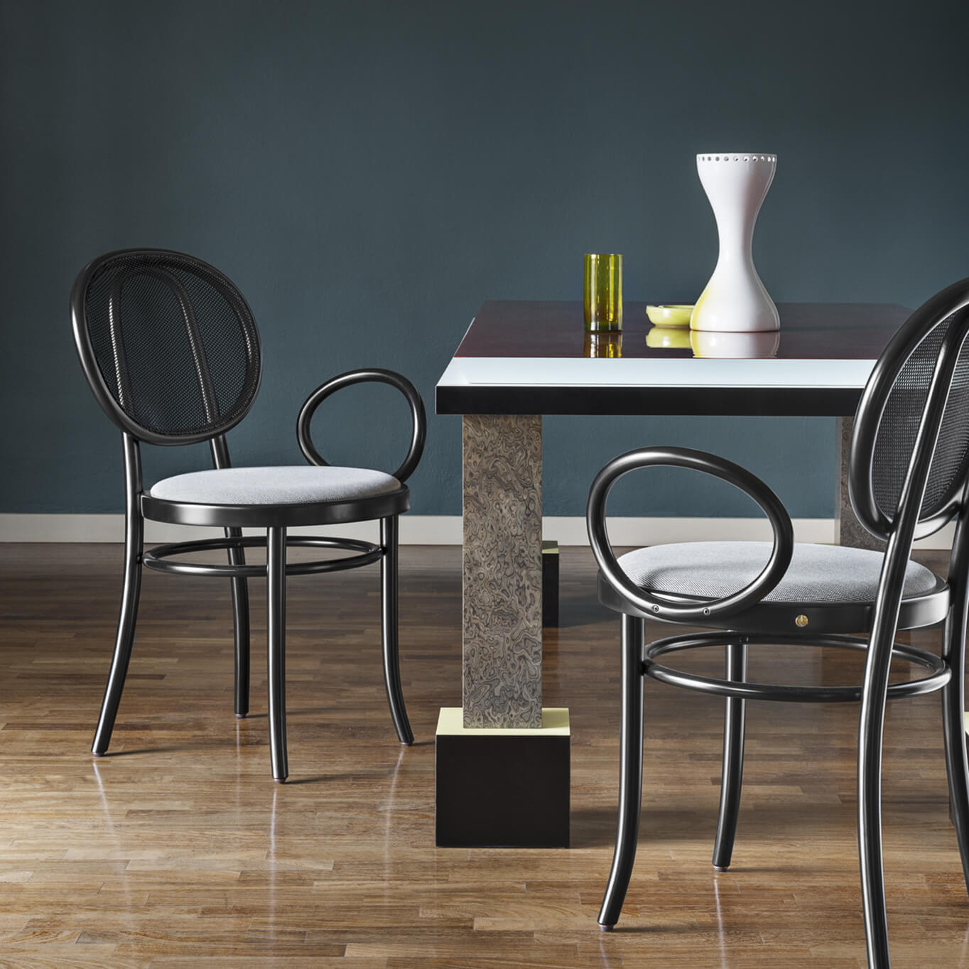 Gebrüder Thonet Vienna nait d’une famille de producteurs de meubles à succès pendant l’ère industrielle. Michael Thonet, fondateur, travaille le bois et passe de la technique du bois lamellé collé à celle du bois de section ronde courbé à la vapeur. Élégance formelle, solidité et légèreté ont déterminé le succès de Gebrüder Thonet Vienna, qui en quelques années a ouvert des sites de production dans le monde entier. Un processus de production unique qui est enraciné dans une histoire riche d’influences