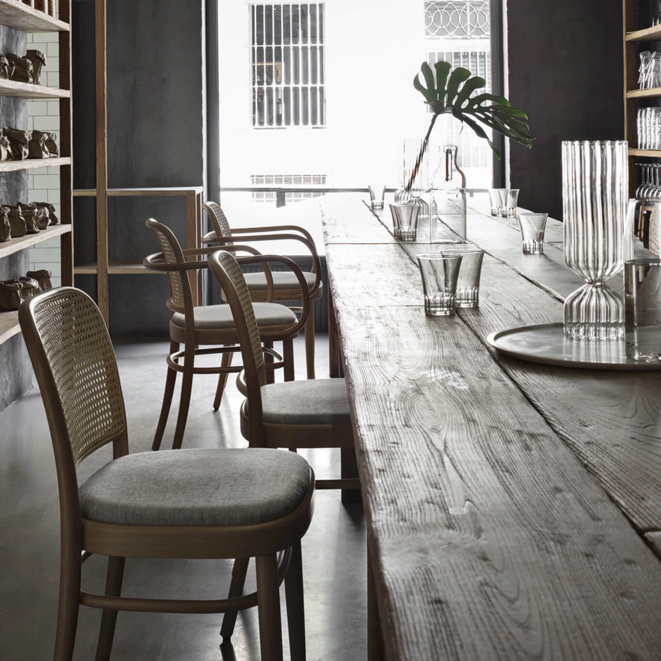 Gebrüder Thonet Vienna nait d’une famille de producteurs de meubles à succès pendant l’ère industrielle. Michael Thonet, fondateur, travaille le bois et passe de la technique du bois lamellé collé à celle du bois de section ronde courbé à la vapeur. Élégance formelle, solidité et légèreté ont déterminé le succès de Gebrüder Thonet Vienna, qui en quelques années a ouvert des sites de production dans le monde entier. Un processus de production unique qui est enraciné dans une histoire riche d’influences