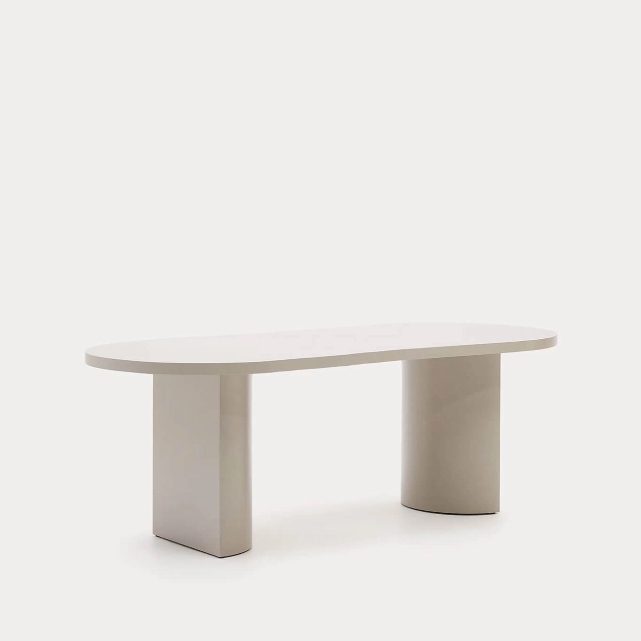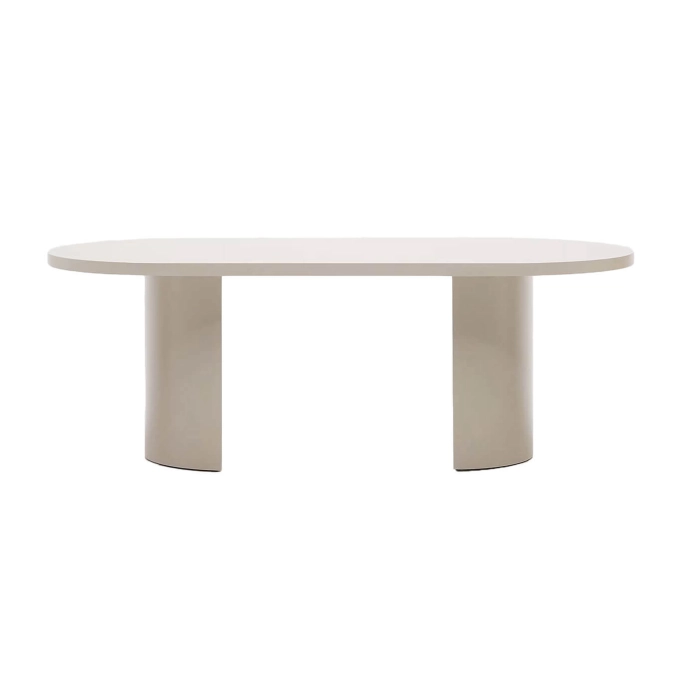 Kave Home, mesurant 240 x 100 cm, et conçue pour offrir un équilibre parfait entre simplicité, polyvalence et design sculptural. Sa finition soignée combine deux couches de peinture et une couche finale de polyuréthane, garantissant résistance et durabilité au quotidien. Les pieds semi-circulaires peuvent être montés dans deux positions différentes, permettant de personnaliser l’esthétique de la table selon vos préférences et de renforcer son allure contemporaine. Pensée pour accueillir jusqu’à 8 personnes, la table