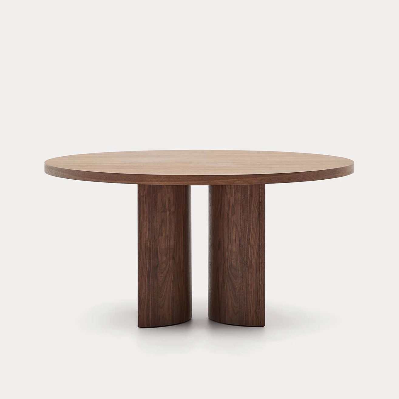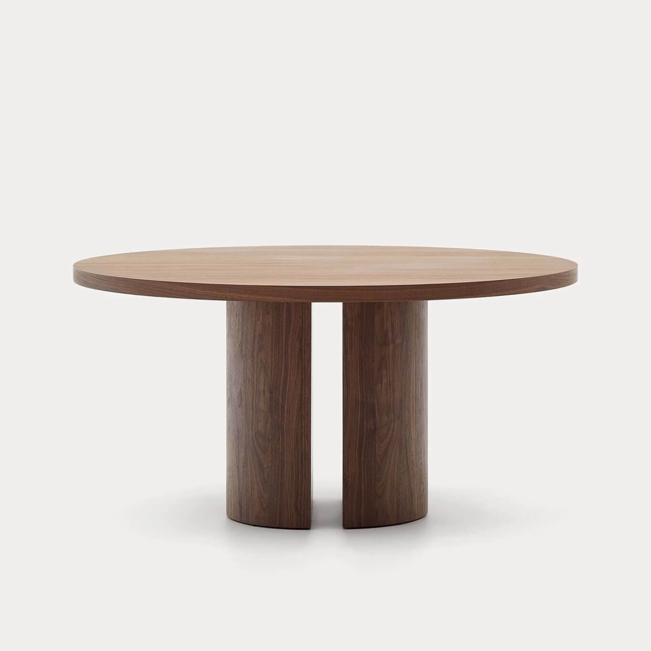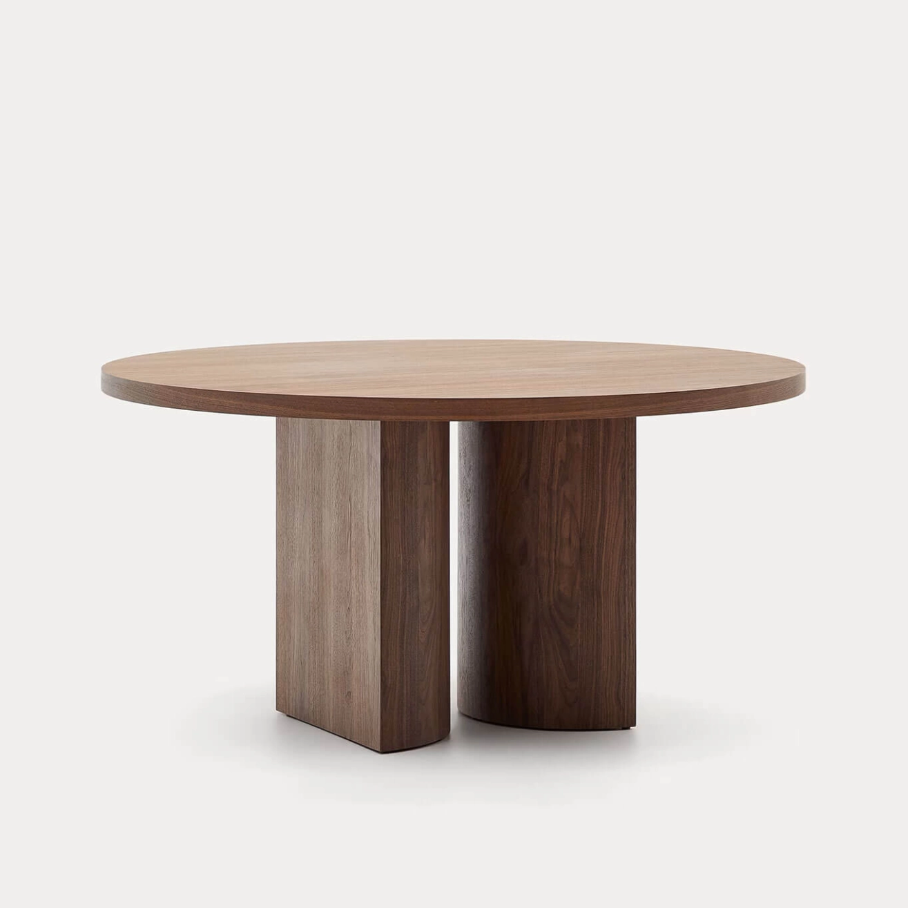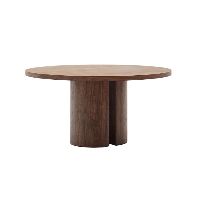 Nealy est une table ronde en placage de noyer finition foncée de la collection