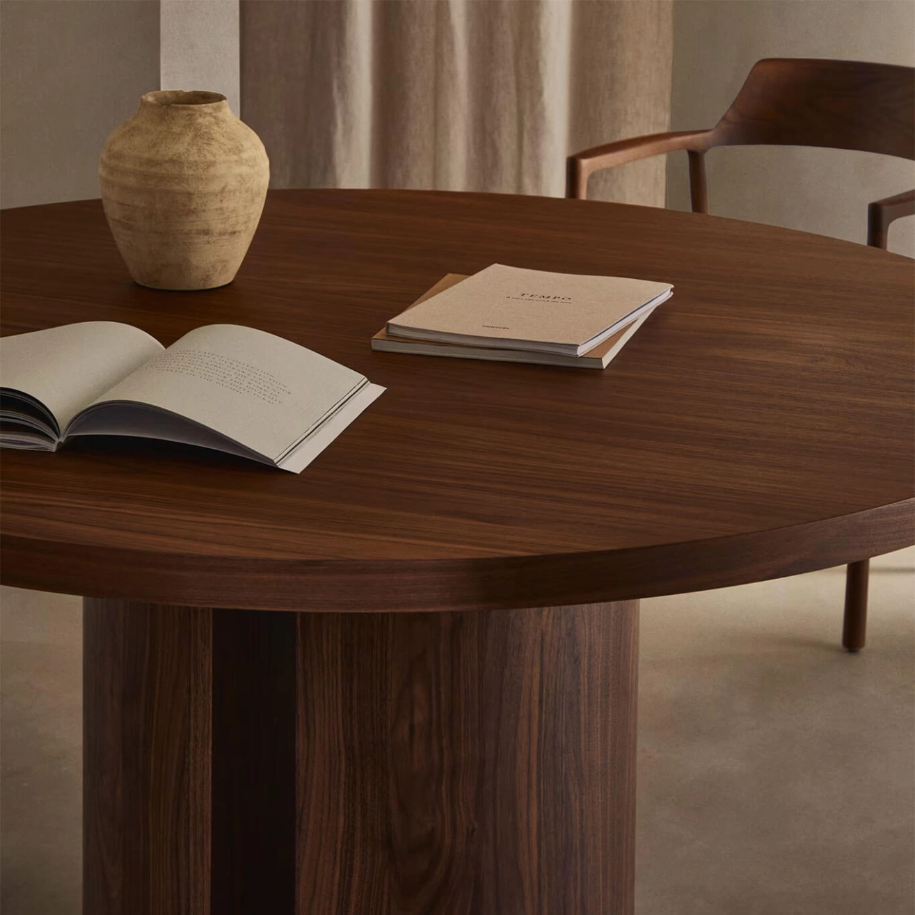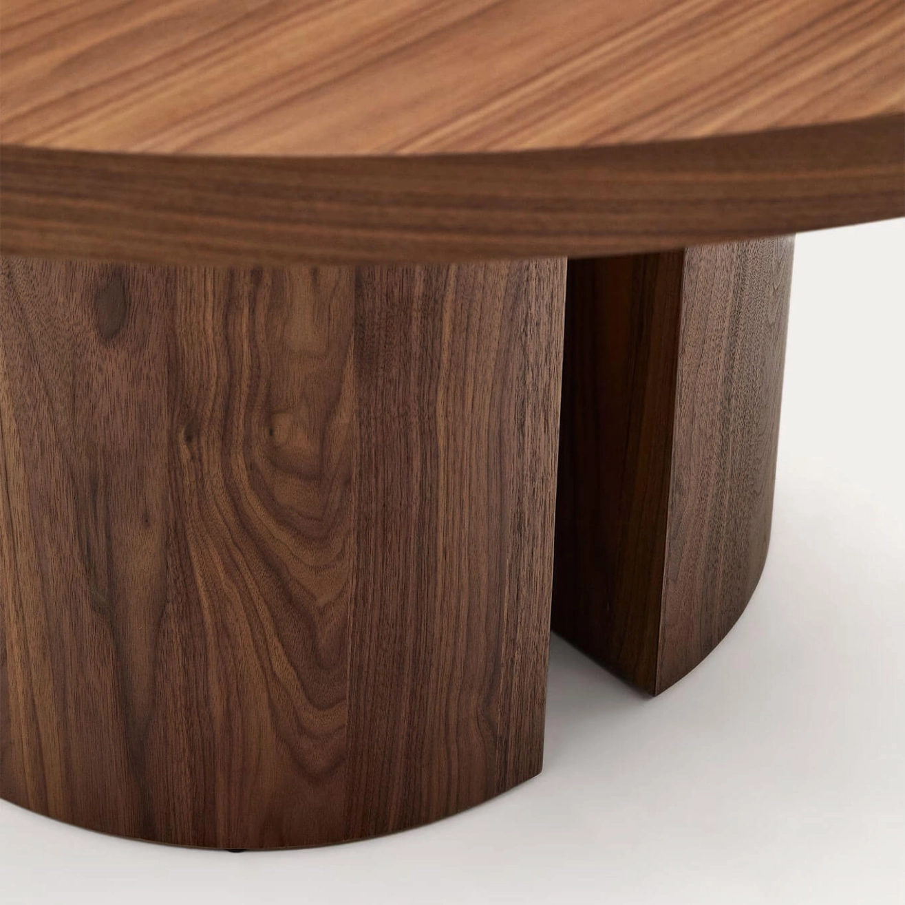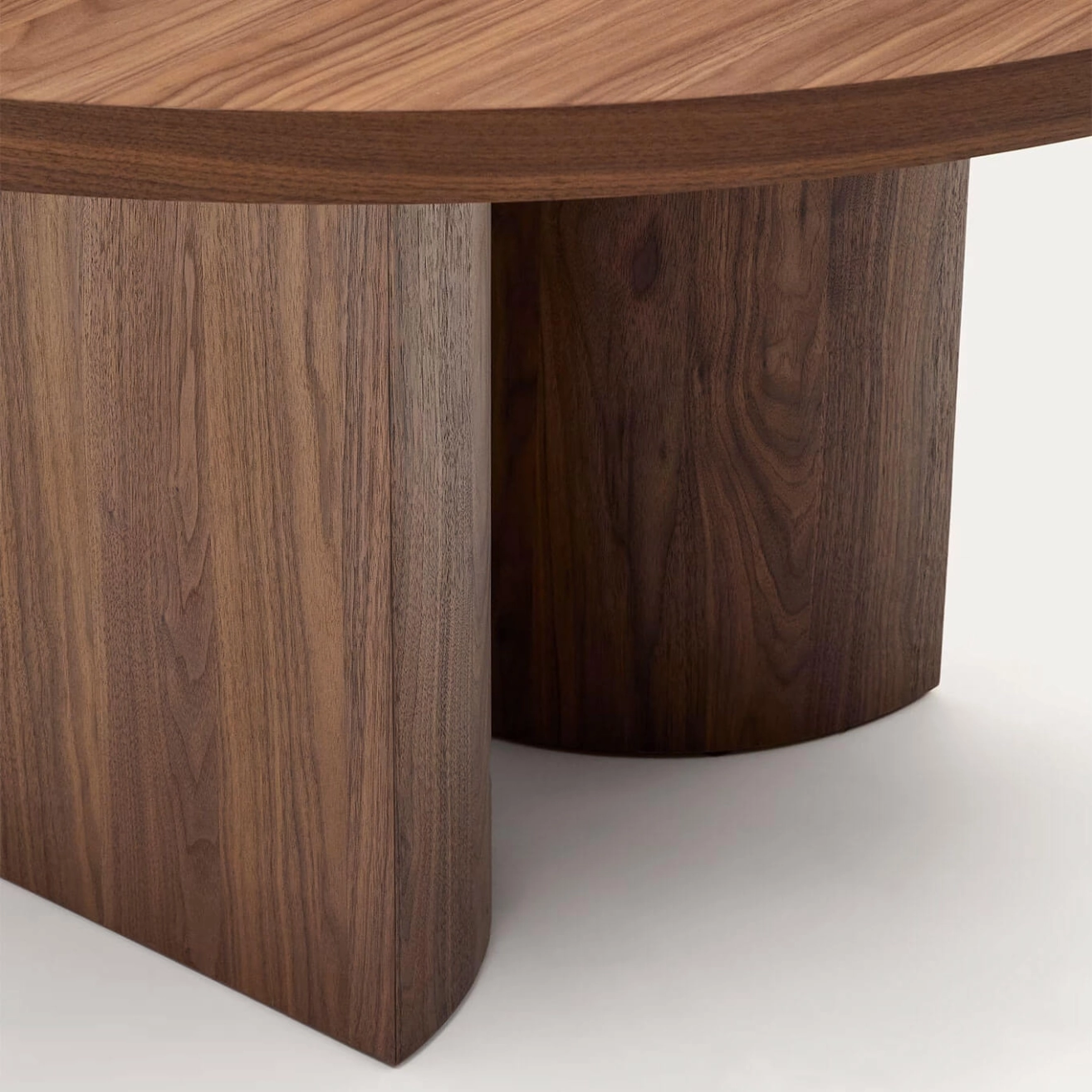 Nealy est une table ronde en placage de noyer finition foncée de la collection