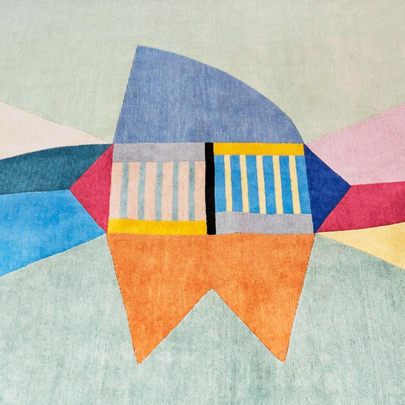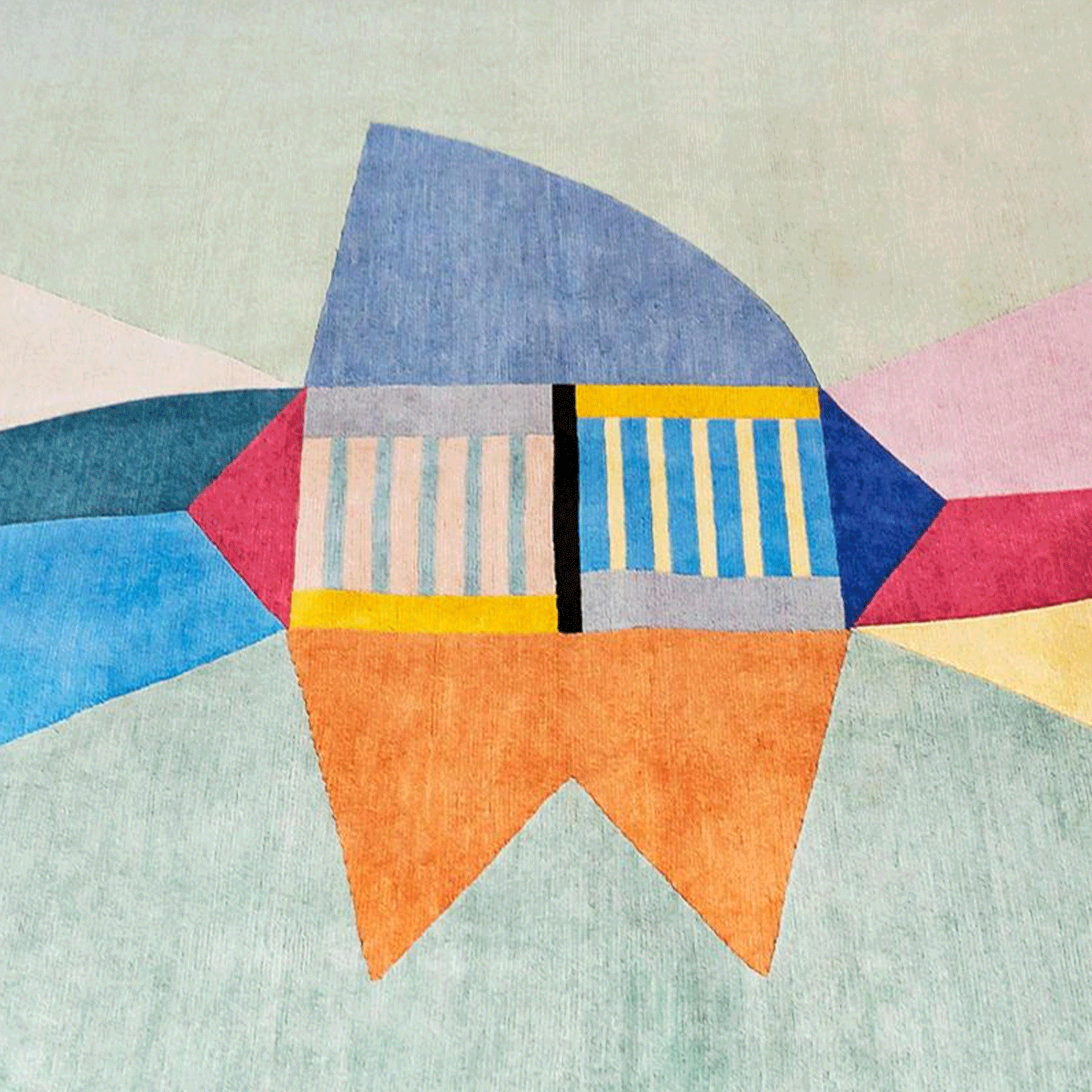 Nello Spazio d’Umberto Riva, il traduit avec poésie le dialogue entre lignes, espaces et champs de couleurs. Entre tradition et modernité, le tapis