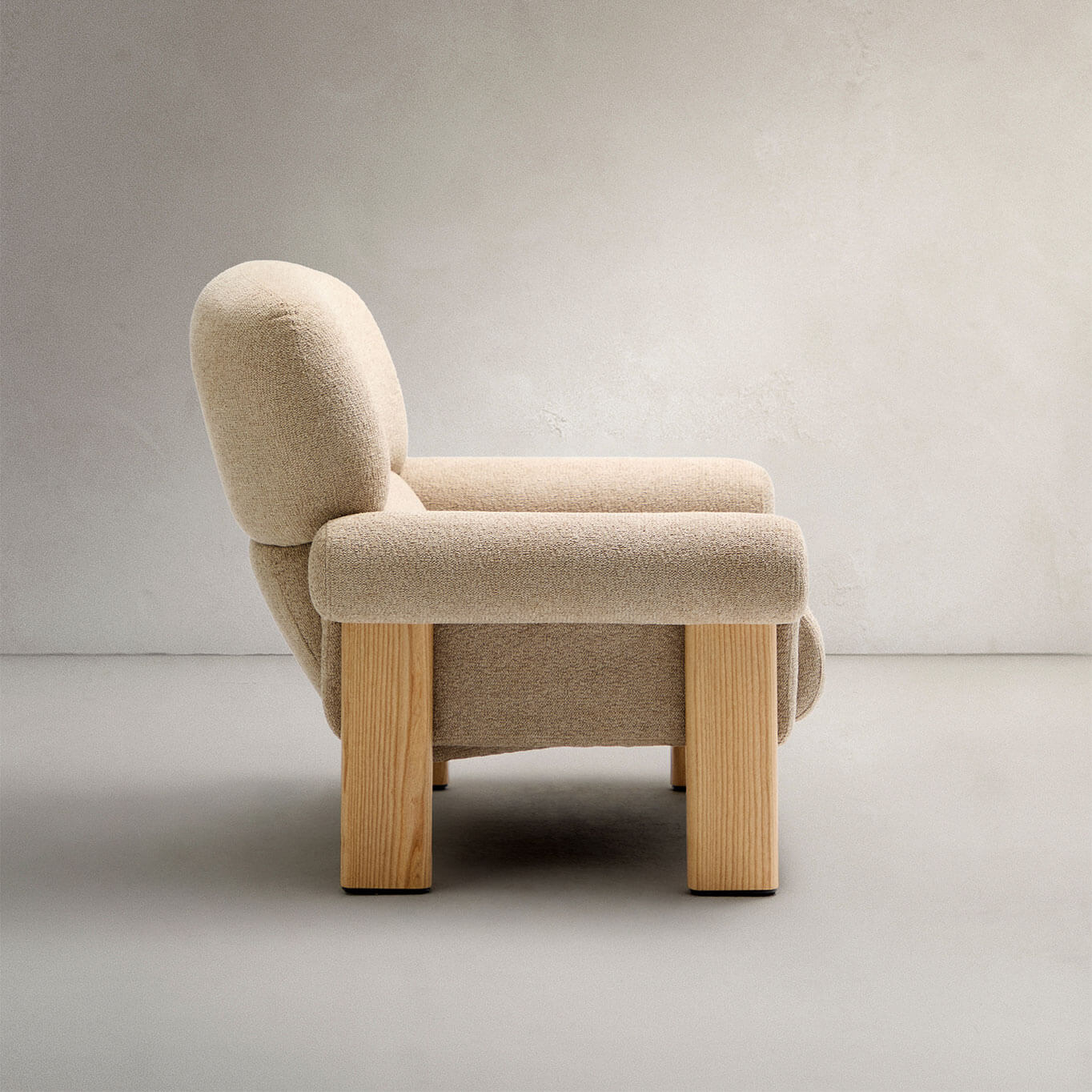 fauteuil Nema s’intègre naturellement dans un salon, un coin lecture ou une chambre, tout en apportant une touche de caractère et d’harmonie visuelle à votre décoration.