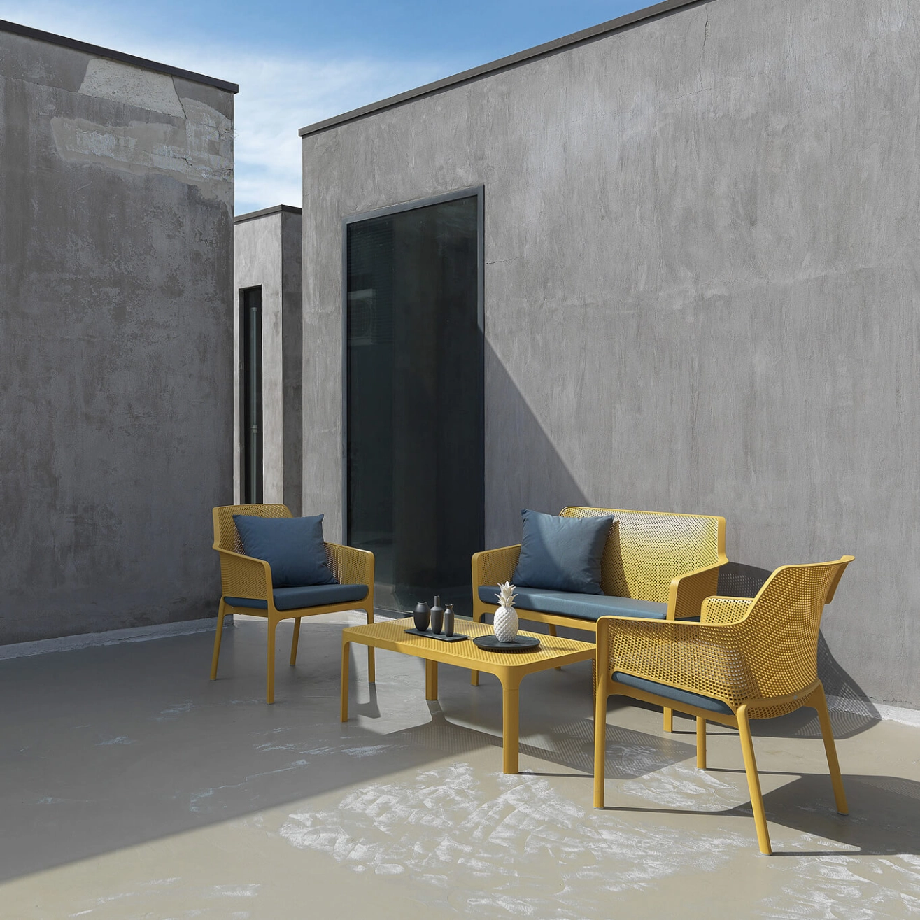 Conçue par le designer Raffaello Galiotto, la table basse Net 100 de la marque Nardi séduit par son style contemporain et sa grande fonctionnalité. Issue de la collection Net, elle se distingue par ses lignes épurées et sa structure ajourée qui évoque légèreté et élégance. Fabriquée en résine de qualité, elle résiste parfaitement aux intempéries et aux rayons UV, ce qui en fait un choix idéal pour les espaces extérieurs. La Net 100 s’intègre harmonieusement à tout environnement extérieur, qu’il s’agisse d’une terrasse, d’un jardin ou d’un balcon, et complète à merveille les autres pièces de la gamme Net. Une création signée Nardi qui allie design, confort et durabilité.
