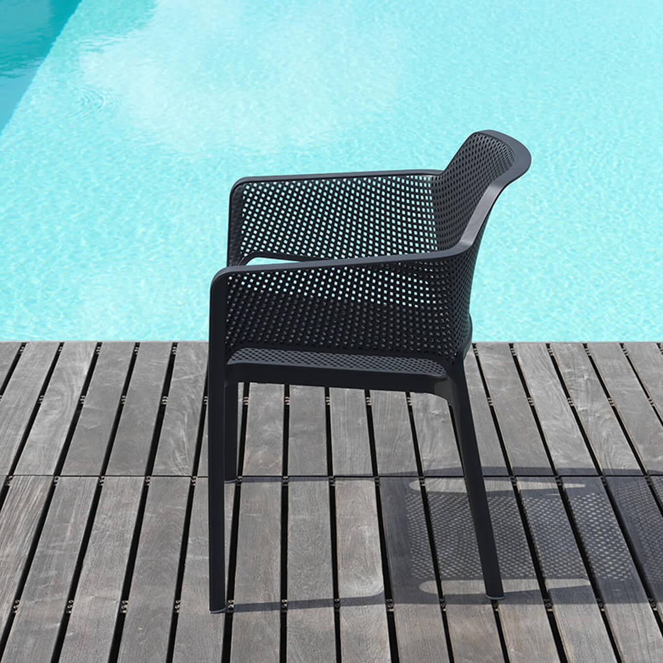 Conçue par le designer Raffaello Galiotto , la chaise Net de Nardi se distingue par son style contemporain et sa fonctionnalité remarquable. Fabriquée en polypropylène de haute qualité renforcé de fibre de verre, la Net offre une assise confortable et résistante, idéale pour une utilisation en extérieure. Son design ajouré, caractéristique de la collection Net , permet une excellente ventilation tout en ajoutant une touche élégante et moderne à tout espace. Disponible dans une large gamme de couleurs, elle s’adapte à tous les styles et ambiances. Empilable et facile d’entretien, cette chaise combine esthétisme et praticité, reflétant tout le savoir-faire de Nardi.