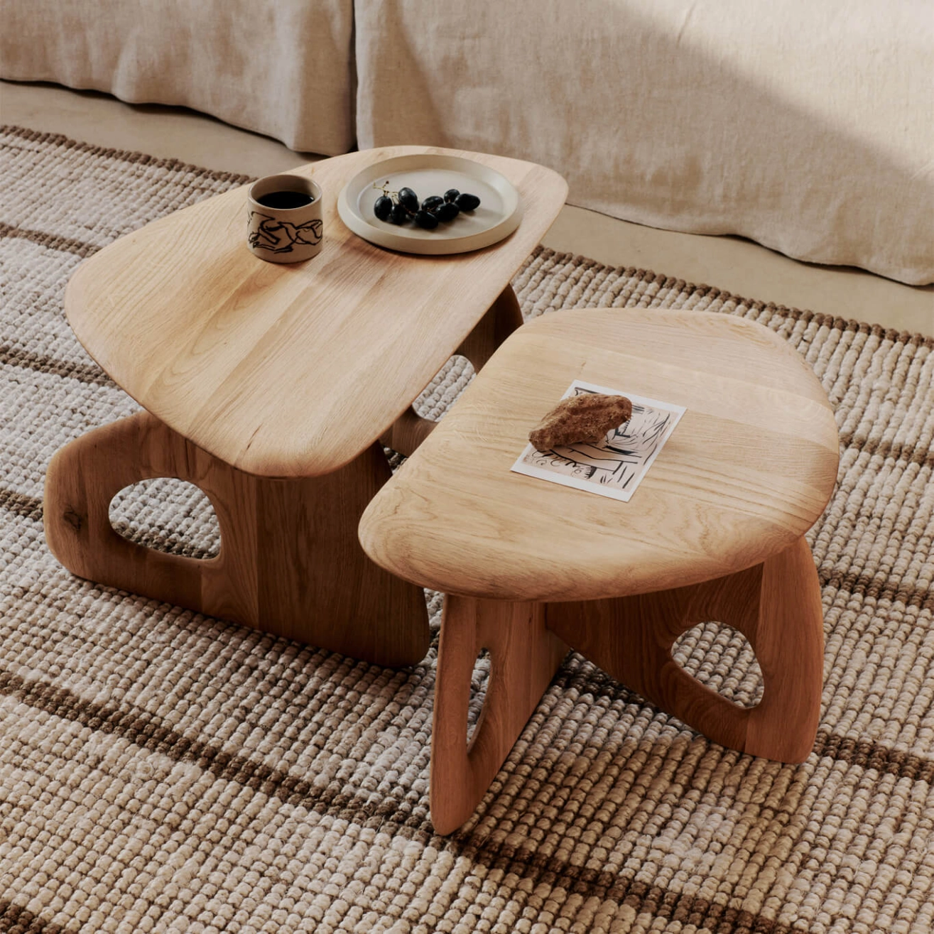 La table basse Oar de Ferm Living allie élégance et design réfléchi, avec des courbes douces et fluides et des pieds aux détails de découpe uniques. Elle est fabriquée en chêne massif certifié FSC avec une finition huilée naturelle et ses pieds en laiton renforcent son côté sophistiqué tout en assurant sa stabilité sur différentes surfaces. Conçue dans un souci de polyvalence, la table basse Oar se décline en deux formes qui s’emboîtent parfaitement, offrant une grande flexibilité pour une utilisation individuelle ou en tant que surface combinée. La table basse est emballée à plat pour un assemblage facile, ce qui en fait un ajout pratique et raffiné à tout espace de vie.