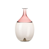 Venini, ces bouteilles toutes différentes sont réalisées en verre soufflé grâce à la technique de « l’Incalmo ». Ce procédé consiste à assembler deux parties en verre de couleurs différentes pour créer une seule pièce. Le design de Tapio Wirkkala associé au talents des maîtres verriers de