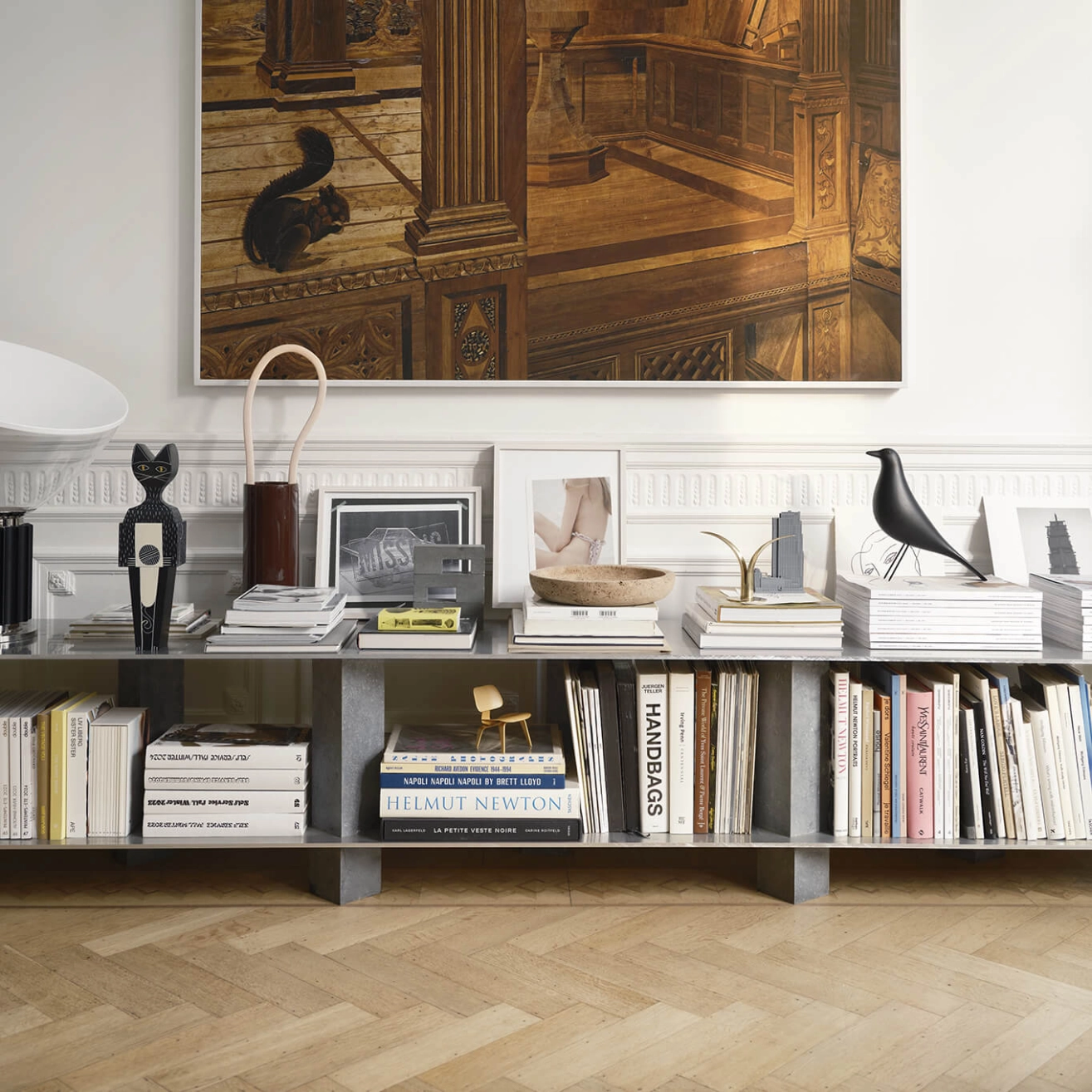 Le couple de designers Charles et Ray Eames aimaient décorer leur maison privée, avec de nombreux objets et accessoires, ramenés lors de leurs voyages. Au milieu de leur salon, nous pouvons retrouver depuis plus de cinquante ans, une sculpture d’oiseau en bois. Cette charmante création, l'oiseau Eames House Bird de Vitra, n’est pas un design typique de Charles et Ray Eames, mais il symbolise leur affection pour le Folk Art américain. Le Eames House Bird Noyer est un grand classique du design américain. Le Eames House Bird est disponible aussi dans une version noire, éditée par Vitra. C’est un objet insolite pour la maison, à poser sur une table de bureau ou de salle à manger. Le Eames House Bird est un de leurs objets les plus prisés de l’art populaire américain. Édité par Vitra, cet oiseau au charme intemporel se décline aujourd’hui dans de nouvelles finitions raffinées : le noyer foncé, le frêne noir et le frêne Cotton White. Trois nuances élégantes qui réinventent ce symbole du Folk Art américain tout en respectant l’esthétique originale imaginée par les Eames. Sa forte présence a été utilisée de nombreuses fois dans leurs photos comme accessoire de décoration, inspiré de l’oiseau de la région des Appalaches à l’est des États-Unis. Le Eames House Bird fait partie des accessoires du design les plus prisés par les amateurs de design Eames et d’ornithologie. En combinant le design de base de l’oiseau et la créativité de la famille Eames, Vitra a décidé de produire cet oiseau en série.