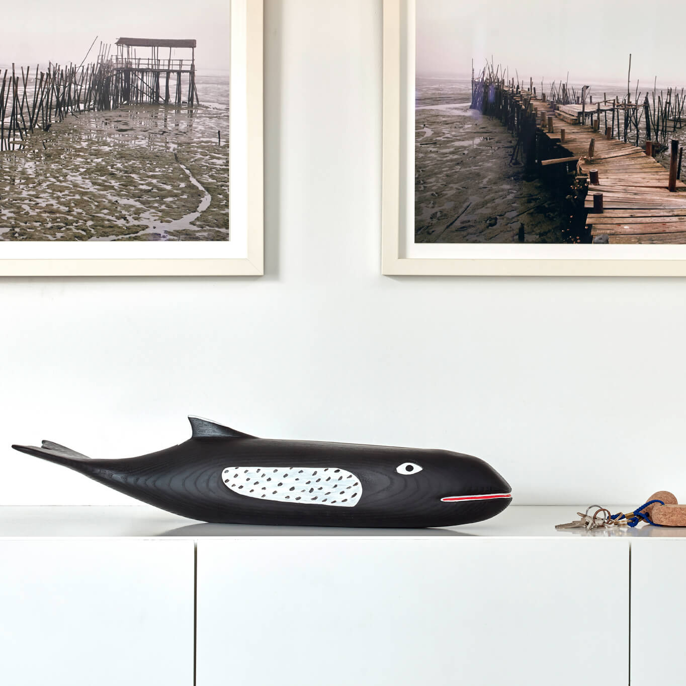 Une des caractéristiques dominantes de la collection Eames était une énorme baleine en bois de plus de deux mètres de long, une œuvre anonyme d'art populaire nord-américain. Charles et Ray Eames étaient particulièrement passionnés par cet objet peint : il occupait une place permanente dans l'Eames Office et apparaissait également dans des séances de photos – comme les premières photos du Lounge Chair. La reproduction à plus petite échelle du
