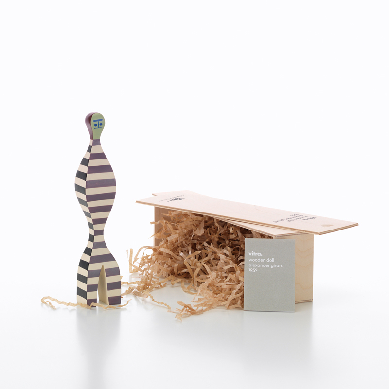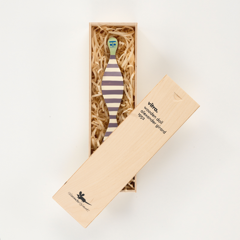 Inspiré par sa vaste collection d'œuvres d'art populaire, l'architecte et designer Alexander Girard crée les Wooden Dolls pour sa propre maison à Santa Fe, destinées uniquement à son usage personnel. Entre l'objet de décoration et le jouet, les Wooden Dolls sont désormais disponibles au grand public, pour enrichir votre aménagement intérieur. Les Wooden Dolls font partie de la collection du Vitra Design Museum, reconnues internationalement, et exposées dans de nombreux musées et galeries de design. Incontournables, ces petites poupées fabriquées et peintes à la main en bois de pin massif, sont vendues dans leur écrin en bois imprimé. Les Wooden Dolls vous charmeront sans aucun doute, que vous en ayez une ou plusieurs, car ces objets insolites sont, selon le designer : « un microcosme du monde humain et des rêves , elles représentent la fantaisie, l'imagination, l'humour et l'amour ».