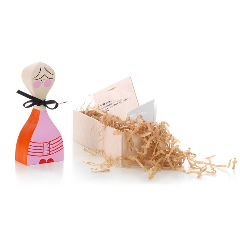 Inspiré par sa vaste collection d'œuvres d'art populaire, l'architecte et designer Alexander Girard crée les Wooden Dolls pour sa propre maison à Santa Fe, destinées uniquement à son usage personnel. Entre l'objet de décoration et le jouet, les Wooden Dolls sont désormais disponibles au grand public, pour enrichir votre aménagement intérieur. Les Wooden Dolls font partie de la collection du Vitra Design Museum, reconnues internationalement, et exposées dans de nombreux musées et galeries de design. Incontournables, ces petites poupées fabriquées et peintes à la main en bois de pin massif, sont vendues dans leur écrin en bois imprimé. Les Wooden Dolls vous charmeront sans aucun doute, que vous en ayez une ou plusieurs, car ces objets insolites sont, selon le designer : « un microcosme du monde humain et des rêves , elles représentent la fantaisie, l'imagination, l'humour et l'amour ».