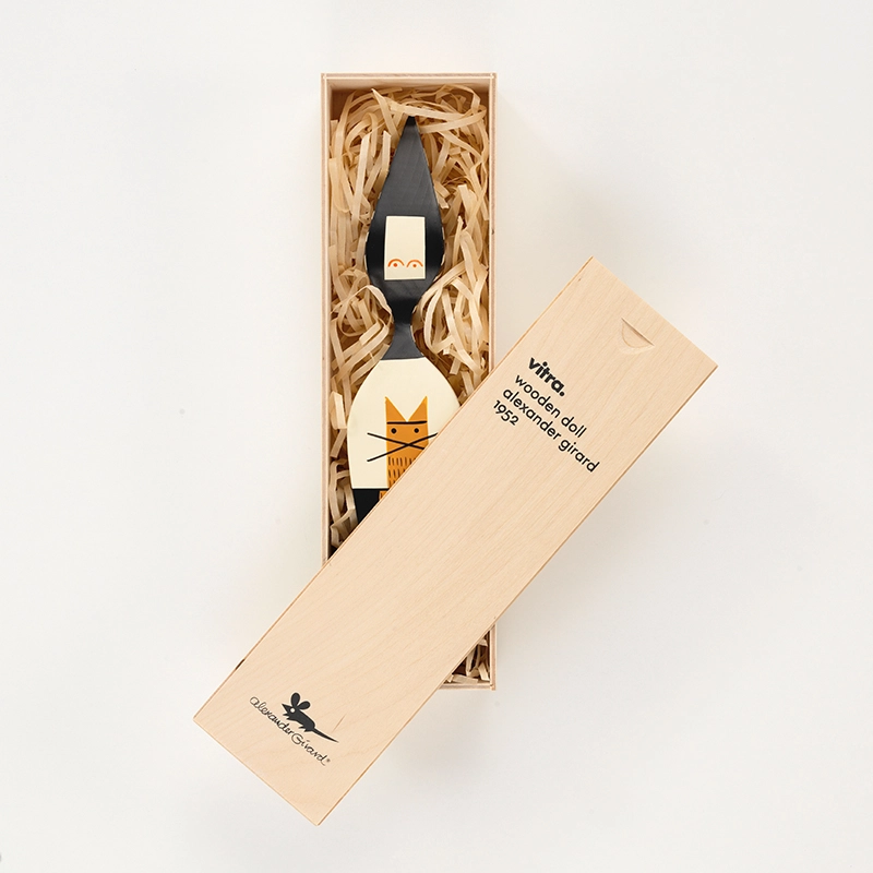 Né en 1907 à New York, Alexander Girard est l’une des figures emblématiques du design américain de l’après-guerre. Architecte de formation, il est longtemps resté dans l’ombre avant de prendre la direction de la division tissus et textiles de l’éditeur Herman Miller, pour qui il créa une multitude de tissus aux couleurs vives, avec un goût prononcé pour les motifs géométriques et les formes abstraites. Ses inspirations puisent leurs racines dans ses voyages et découvertes à travers le monde. Il est également lié d’amitié avec les designers George Nelson et le couple Charles & Ray Eames. Alexander Girard se distingue par ses créations de mobilier ainsi que par ses séries de personnages décalés en bois, surnommés « Wooden Dolls » ou « Figurine Dolls ». Aujourd’hui édité par Vitra, son travail continue de résonner dans le monde du design. En 1962, avec l’aide de sa femme, il crée la Fondation Girard, qui recense une collection de plus de 100 000 pièces. Après sa disparition en 1993, ses héritiers font don de ses archives, comprenant de nombreux croquis, prototypes et échantillons, au Vitra Design Museum.