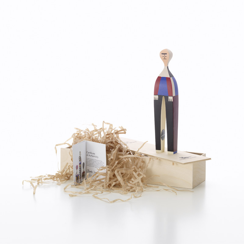 Inspiré par sa vaste collection d'œuvres d'art populaire, l'architecte et designer Alexander Girard crée les Wooden Dolls pour sa propre maison à Santa Fe, destinées uniquement à son usage personnel. Entre l'objet de décoration et le jouet, les Wooden Dolls sont désormais disponibles au grand public, pour enrichir votre aménagement intérieur. Les Wooden Dolls font partie de la collection du Vitra Design Museum, reconnues internationalement, et exposées dans de nombreux musées et galeries de design. Incontournables, ces petites poupées fabriquées et peintes à la main en bois de pin massif, sont vendues dans leur écrin en bois imprimé. Les Wooden Dolls vous charmeront sans aucun doute, que vous en ayez une ou plusieurs, car ces objets insolites sont, selon le designer : « un microcosme du monde humain et des rêves , elles représentent la fantaisie, l'imagination, l'humour et l'amour ».