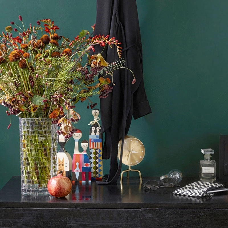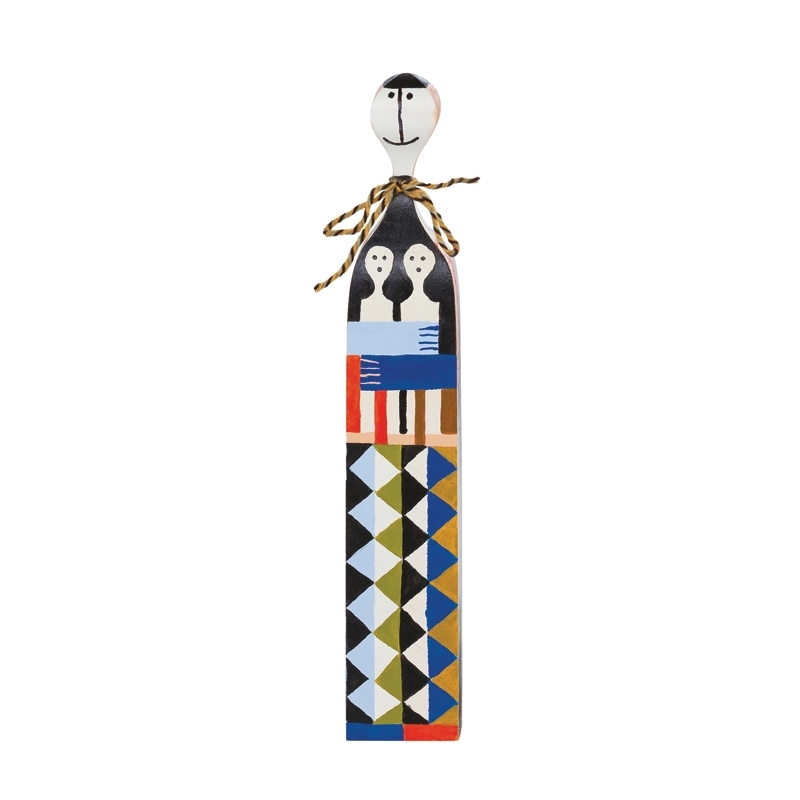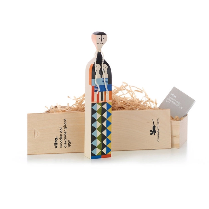 Né en 1907 à New York, Alexander Girard est l’une des figures emblématiques du design américain de l’après-guerre. Architecte de formation, il est longtemps resté dans l’ombre avant de prendre la direction de la division tissus et textiles de l’éditeur Herman Miller, pour qui il créa une multitude de tissus aux couleurs vives, avec un goût prononcé pour les motifs géométriques et les formes abstraites. Ses inspirations puisent leurs racines dans ses voyages et découvertes à travers le monde. Il est également lié d’amitié avec les designers George Nelson et le couple Charles & Ray Eames. Alexander Girard se distingue par ses créations de mobilier ainsi que par ses séries de personnages décalés en bois, surnommés « Wooden Dolls » ou « Figurine Dolls ». Aujourd’hui édité par Vitra, son travail continue de résonner dans le monde du design. En 1962, avec l’aide de sa femme, il crée la Fondation Girard, qui recense une collection de plus de 100 000 pièces. Après sa disparition en 1993, ses héritiers font don de ses archives, comprenant de nombreux croquis, prototypes et échantillons, au Vitra Design Museum.