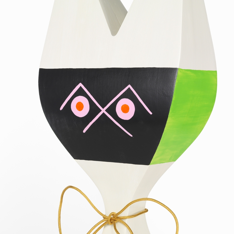 Les Wooden Dolls d'Alexander Girard sont une famille de figures sculptées représentant des personnages humains et des animaux. Inspiré par les objets d'art populaire de sa collection personnelle, Girard a créé ces objets décoratifs en 1952 pour son propre usage dans sa maison de Santa Fe. À l'échelle 4.15:1, les Wooden Dolls No. 1 et No. 9 super large, qui mesurent environ 80 centimètres de haut, ne sont plus les petites figurines décoratives, mais des personnalités audacieuses jouant un rôle de premier plan dans tout environnement. Comme les petits modèles, les Wooden Dolls Vitra géantes sont fabriquées et peintes à la main, fidèles à l'esprit des originaux d'Alexander Girard. Bien que les différences puissent être très subtiles, chaque exemplaire en bois est véritablement une pièce unique.