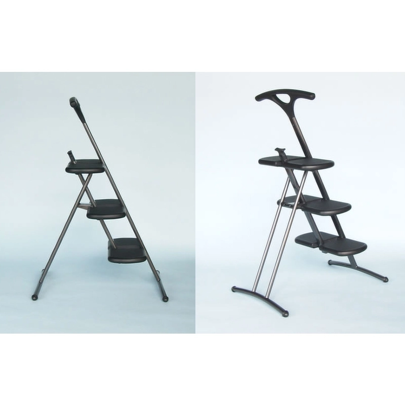 Tiramisù, dessiné par Andries Van Onck pour Kartell, est un escabeau doté de trois marches antidérapantes. Pliant et fonctionnel, il se distingue par sa structure innovante : deux barres incurvées qui servent d'appui au sol et une poignée très pratique et solide permet de déplacer l'escabeau et de l'accrocher au mur facilement. La légèreté du matériau, le mécanisme pratique de fermeture, et l'élégance de ses lignes fines, font de Tiramisù un escabeau s'adaptant parfaitement à tout type d'espace, rangé dans une petite entrée ou adossé au mur de la cuisine.