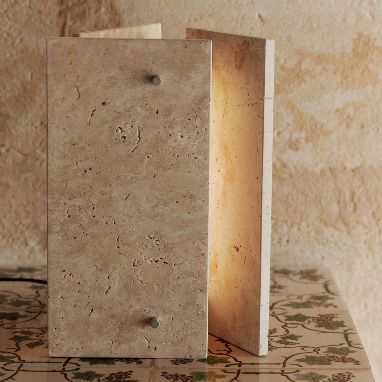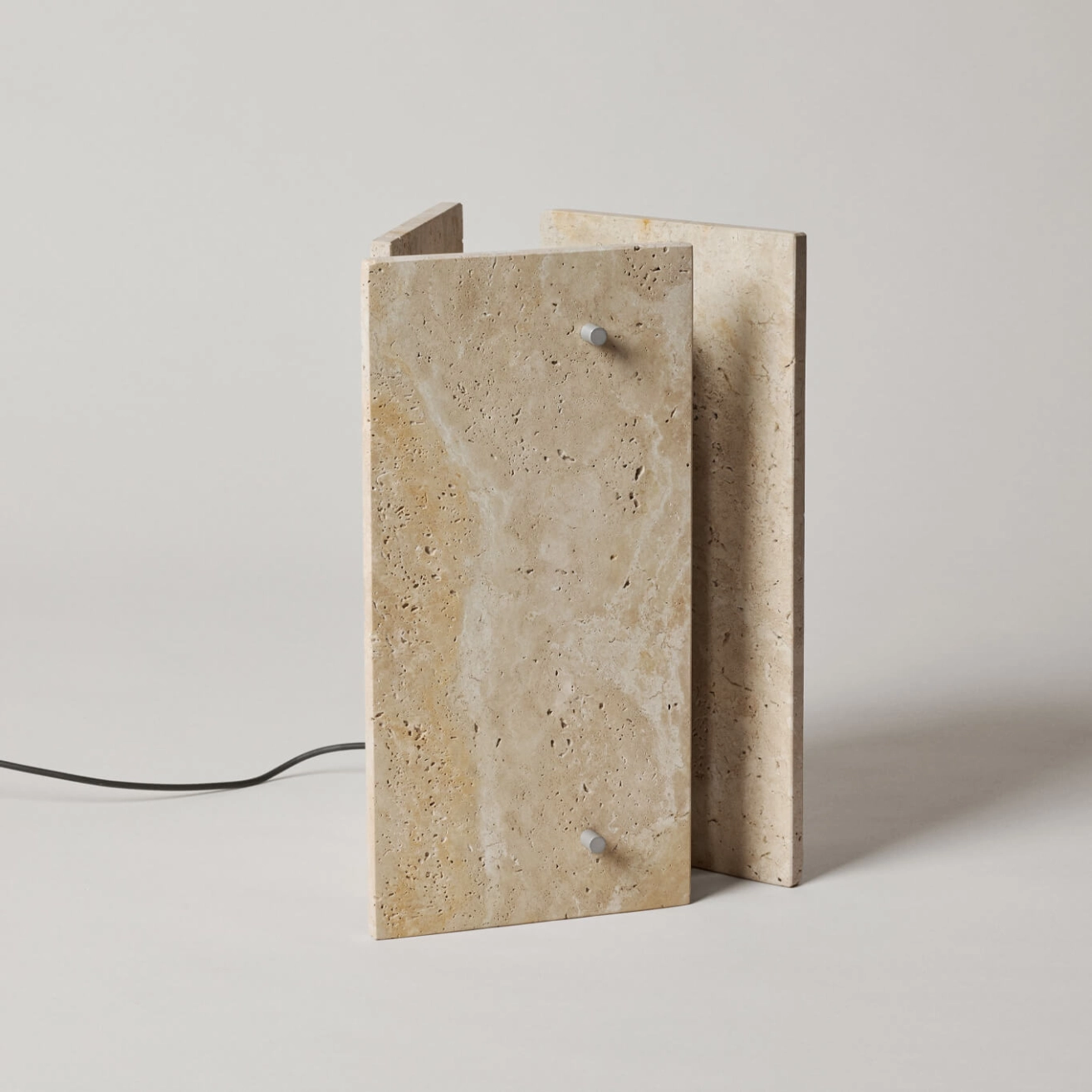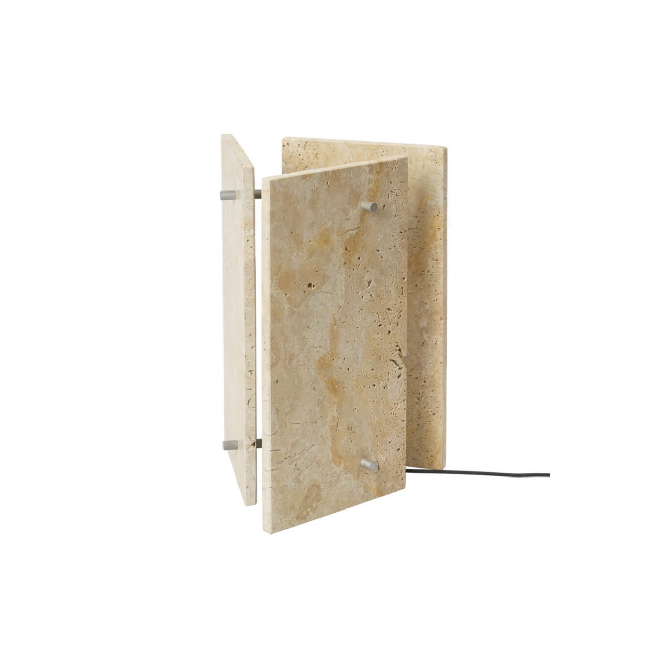Editée par Ferm Living, la Lampe à poser Oeste est composée de trois panneaux de travertin entourant une source lumineuse centrale, créant ainsi un jeu dynamique d’ombre et de lumière. ... En savoir plus