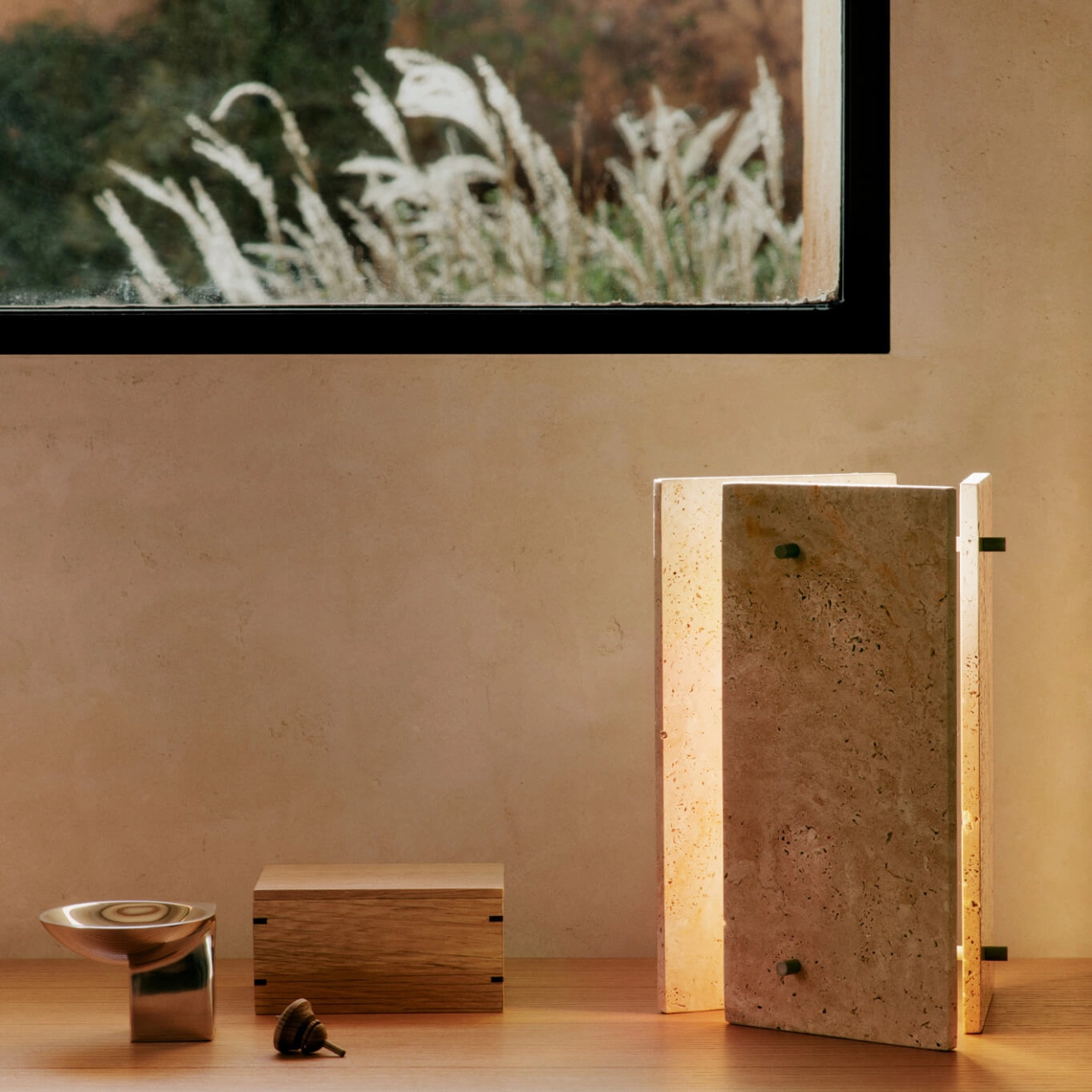 Editée par Ferm Living, la Lampe à poser Oeste est composée de trois panneaux de travertin entourant une source lumineuse centrale, créant ainsi un jeu dynamique d’ombre et de lumière. La texture naturelle de la pierre met en valeur la lumière chaude et diffuse, projetant une lueur douce et architecturale. Emballée à plat pour un assemblage facile et dotée d’une fonction de variation d’intensité, le design de la lampe allie matérialité et utilité et offre une solution d’éclairage d’ambiance pour tous les espaces.