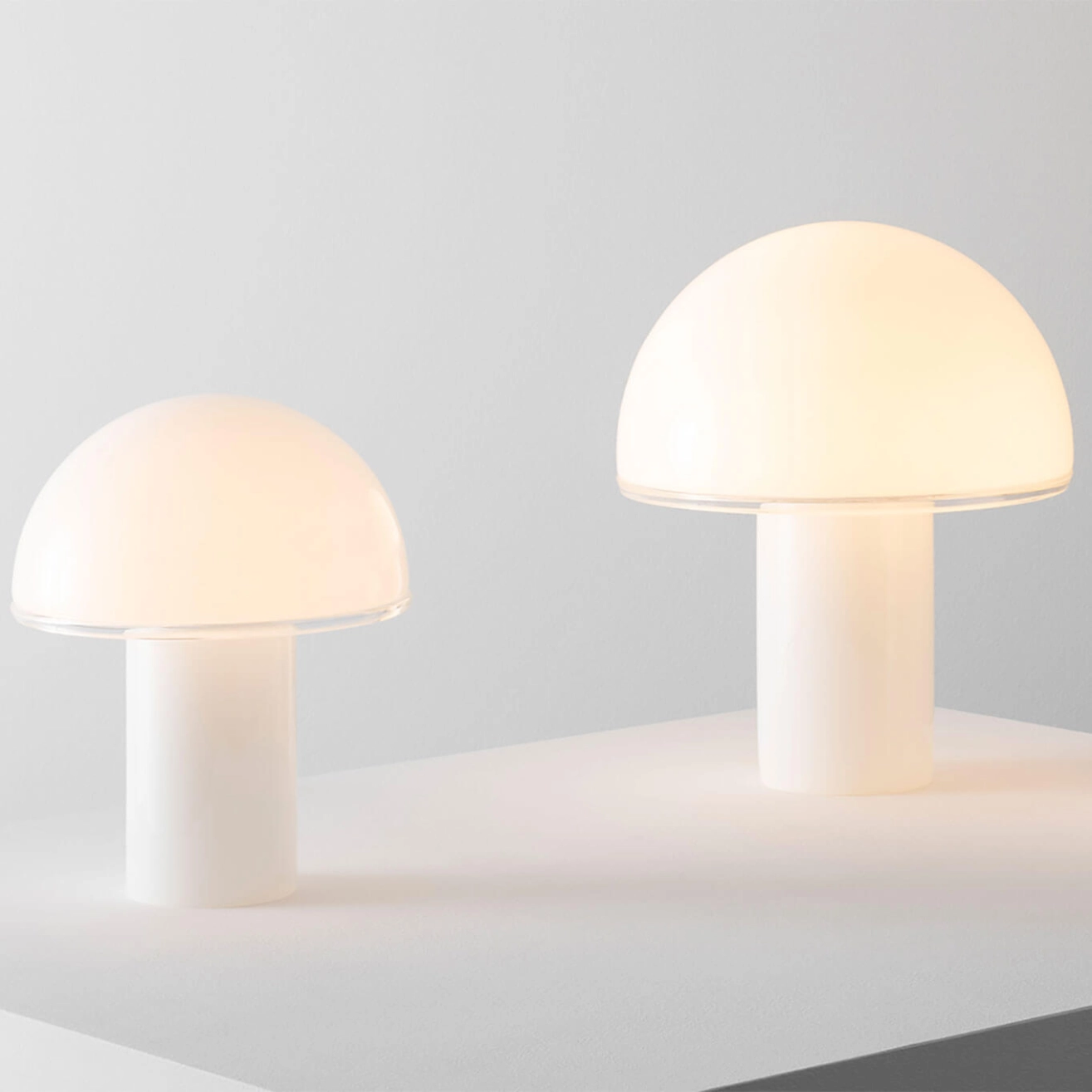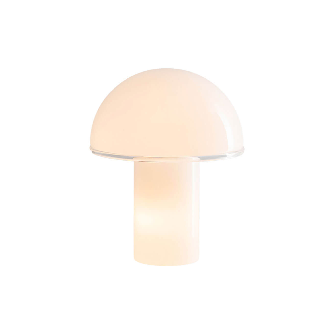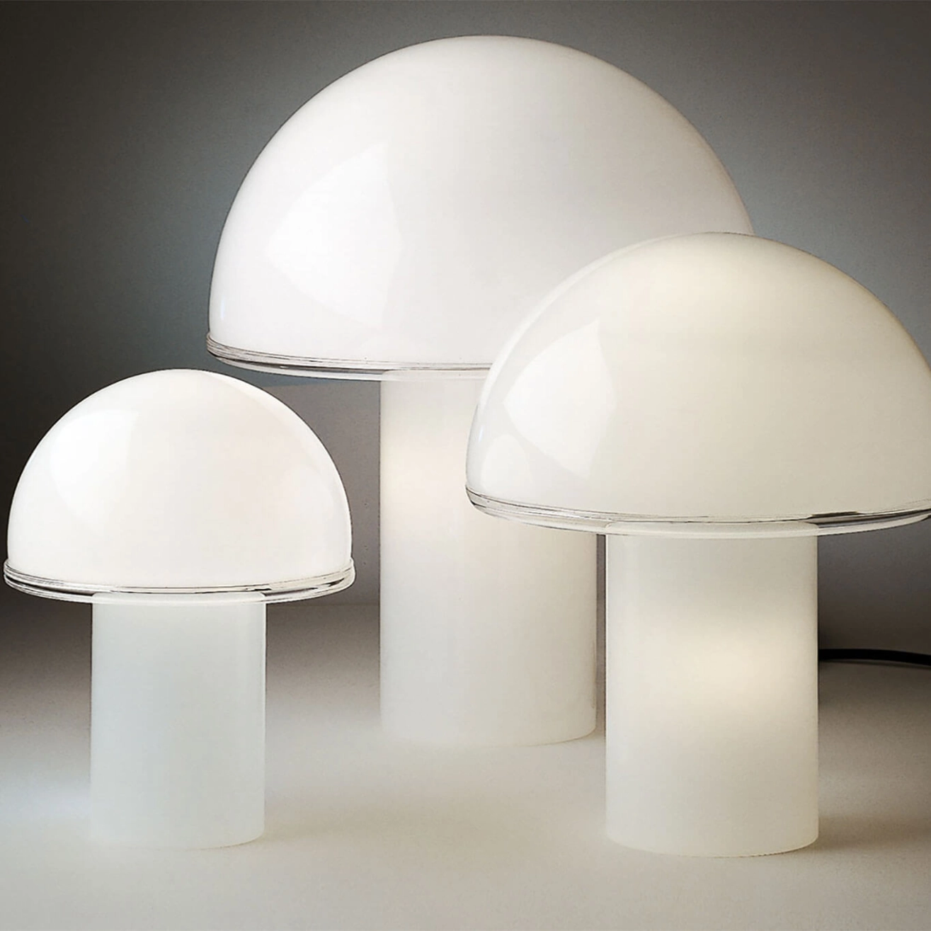 Onfale, conçue par Luciano Vistosi en 1978, est une véritable œuvre de design qui capte immédiatement l’attention. Sa silhouette sinueuse et arrondie évoque la forme parfaite d’un champignon. Réalisée en verre soufflé, elle se compose d’une structure en verre transparent et d’un diffuseur en verre opalin, qui assurent une diffusion lumineuse douce et homogène. Le bord du diffuseur, en verre transparent roulé à chaud, souligne la pureté des lignes et met en valeur le savoir-faire exceptionnel du travail du verre. Disponible en trois tailles, Onfale Piccolo, Medio et Grande, les deux plus grands modèles intègrent une seconde ampoule positionnée dans le pied, permettant un éclairage parfaitement uniforme sur l’ensemble de la lampe. Les deux sources lumineuses peuvent être contrôlées séparément pour créer différentes ambiances. Plus qu’une simple lampe, Onfale est une pièce artistique intemporelle qui enrichit n’importe quel espace avec élégance, un choix raffiné pour ceux qui recherchent une pièce unique et exclusive.
