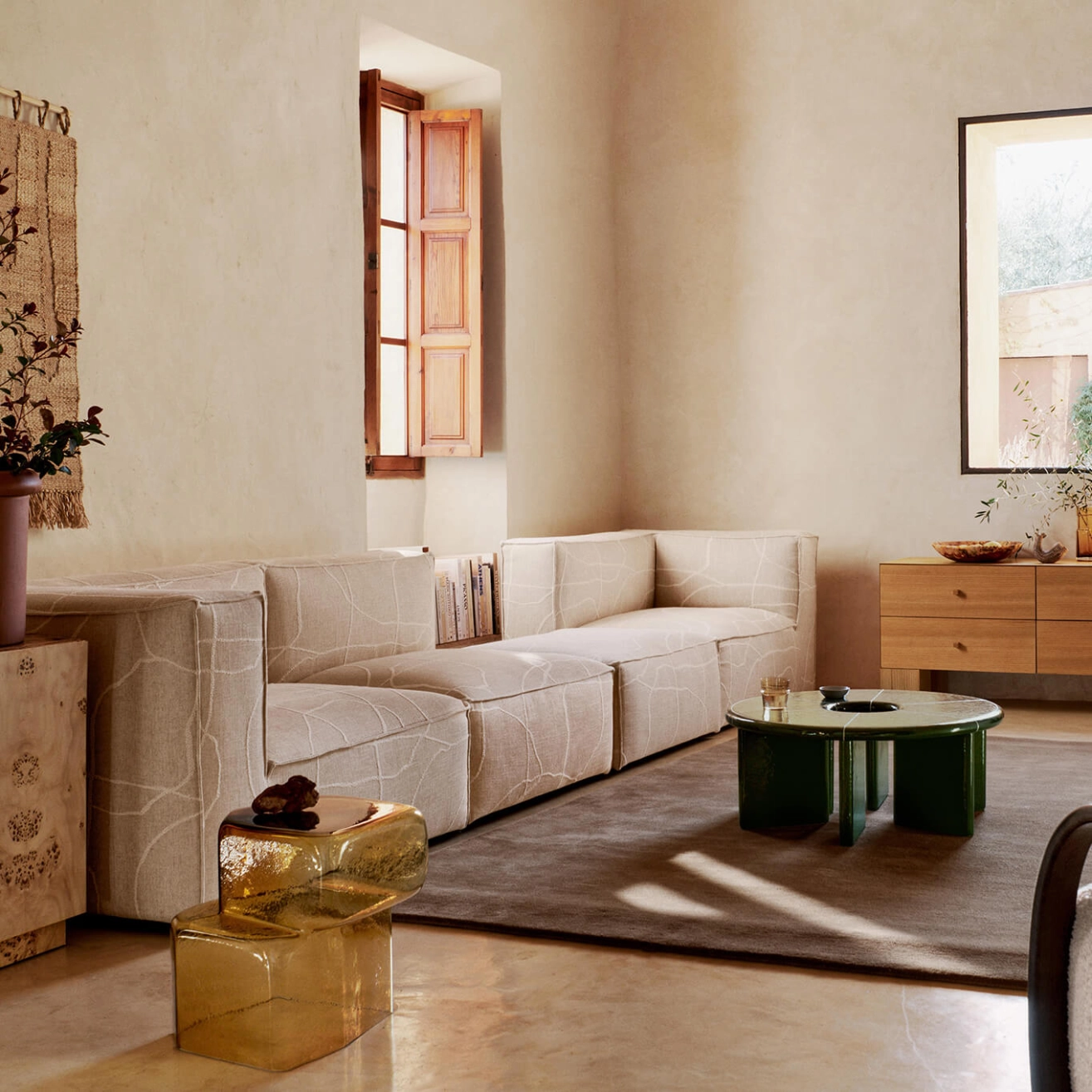 La Sculpture Oscil Ferm Living est une pièce sculpturale en verre qui allie expression artistique et savoir-faire artisanal complexe. Baptisée « Oscil » pour évoquer le concept d’oscillation, sa forme dynamique reflète un équilibre subtil et un mouvement harmonieux. Fabriquée en verre recyclé soufflé à la bouche à l’aide d’un moule en brique, elle met en valeur le travail minutieux nécessaire à sa forme large et texturée. Son verre translucide et ses couleurs subtiles confèrent une légèreté visuelle, faisant de cette Sculpture Oscil un élément décoratif remarquable. Cette œuvre est strictement décorative et ne doit pas être utilisée comme table, siège ou tout autre mobilier fonctionnel.