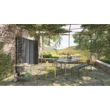 Avec Week-End, la marque française Petite Friture pose son regard singulier sur l’été et propose avec le studio Brichet-Ziegler une approche graphique et contemporaine du mobilier de jardin. La collection Week-End est une gamme de mobilier outdoor complète. Les couleurs précises sélectionnées pour cette collection marquent seules ou en combinaison les lignes d’horizon d’un balcon, d’une terrasse ou d’un jardin. Reprenant les bandes caractéristiques de la collection, cette desserte est disponible en plusieurs couleurs comme le noir, jaune, vert jade … La mise en couleurs de la collection Week-end, de Petite Friture, en peinture poudre époxy anti-UV grainée garantit un maintien impeccable des teintes au cours du temps. La desserte proposée par Petite Friture, a été conçue avec l’obsession de tirer le meilleur parti des matériaux et des techniques de réalisation à la disposition des designers. Réalisée en aluminium, matériau sélectionné pour sa légèreté et sa résistance aux intempéries, la collection Week-End allie confort esthétique et sens pratique.
