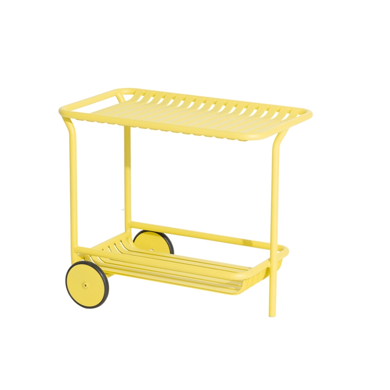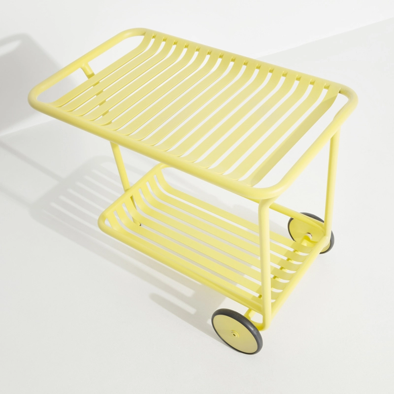 Avec Week-End, la marque française Petite Friture pose son regard singulier sur l’été et propose avec le studio Brichet-Ziegler une approche graphique et contemporaine du mobilier de jardin. La collection Week-End est une gamme de mobilier outdoor complète. Les couleurs précises sélectionnées pour cette collection marquent seules ou en combinaison les lignes d’horizon d’un balcon, d’une terrasse ou d’un jardin. Reprenant les bandes caractéristiques de la collection, cette desserte est disponible en plusieurs couleurs comme le noir, jaune, vert jade … La mise en couleurs de la collection Week-end, de Petite Friture, en peinture poudre époxy anti-UV grainée garantit un maintien impeccable des teintes au cours du temps. La desserte proposée par Petite Friture, a été conçue avec l’obsession de tirer le meilleur parti des matériaux et des techniques de réalisation à la disposition des designers. Réalisée en aluminium, matériau sélectionné pour sa légèreté et sa résistance aux intempéries, la collection Week-End allie confort esthétique et sens pratique.