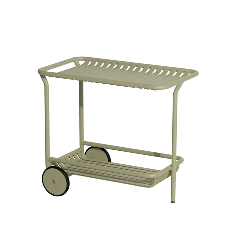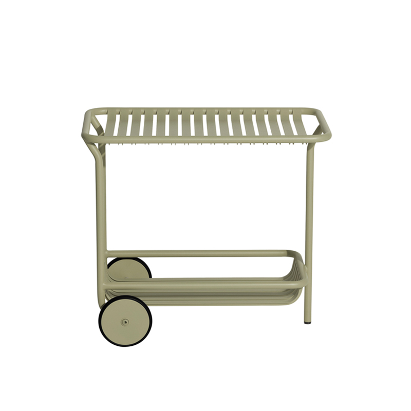 Avec Week-End, la marque française Petite Friture pose son regard singulier sur l’été et propose avec le studio Brichet-Ziegler une approche graphique et contemporaine du mobilier de jardin. La collection Week-End est une gamme de mobilier outdoor complète. Les couleurs précises sélectionnées pour cette collection marquent seules ou en combinaison les lignes d’horizon d’un balcon, d’une terrasse ou d’un jardin. Reprenant les bandes caractéristiques de la collection, cette desserte est disponible en plusieurs couleurs comme le noir, jaune, vert jade … La mise en couleurs de la collection Week-end, de Petite Friture, en peinture poudre époxy anti-UV grainée garantit un maintien impeccable des teintes au cours du temps. La desserte proposée par Petite Friture, a été conçue avec l’obsession de tirer le meilleur parti des matériaux et des techniques de réalisation à la disposition des designers. Réalisée en aluminium, matériau sélectionné pour sa légèreté et sa résistance aux intempéries, la collection Week-End allie confort esthétique et sens pratique.
