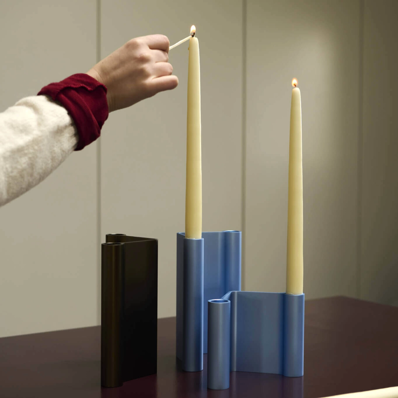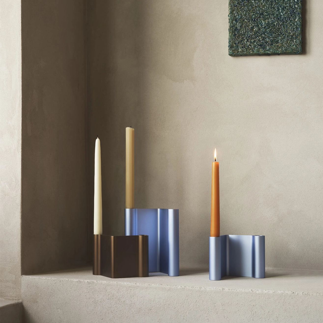 Le chandelier Pair de Muuto réinterprète la tradition de la bougie avec une sensibilité résolument contemporaine. Sa silhouette se compose de deux volumes géométriques qui s’équilibrent avec élégance : une base pleine aux lignes franches et un porte-bougie élancé, créant un jeu visuel entre stabilité et légèreté. Pensé comme un objet sculptural autant que fonctionnel, le chandelier Pair attire le regard qu’il soit posé seul, en duo ou en composition. Sa présence graphique permet de transformer une simple bougie en un accent décoratif raffiné, apportant chaleur et modernité à la table, au rebord d’une fenêtre ou à une étagère. À travers Pair, Muuto propose une pièce intemporelle qui dialogue entre héritage nordique et design minimaliste, fidèle à sa volonté de donner une nouvelle perspective aux objets du quotidien.