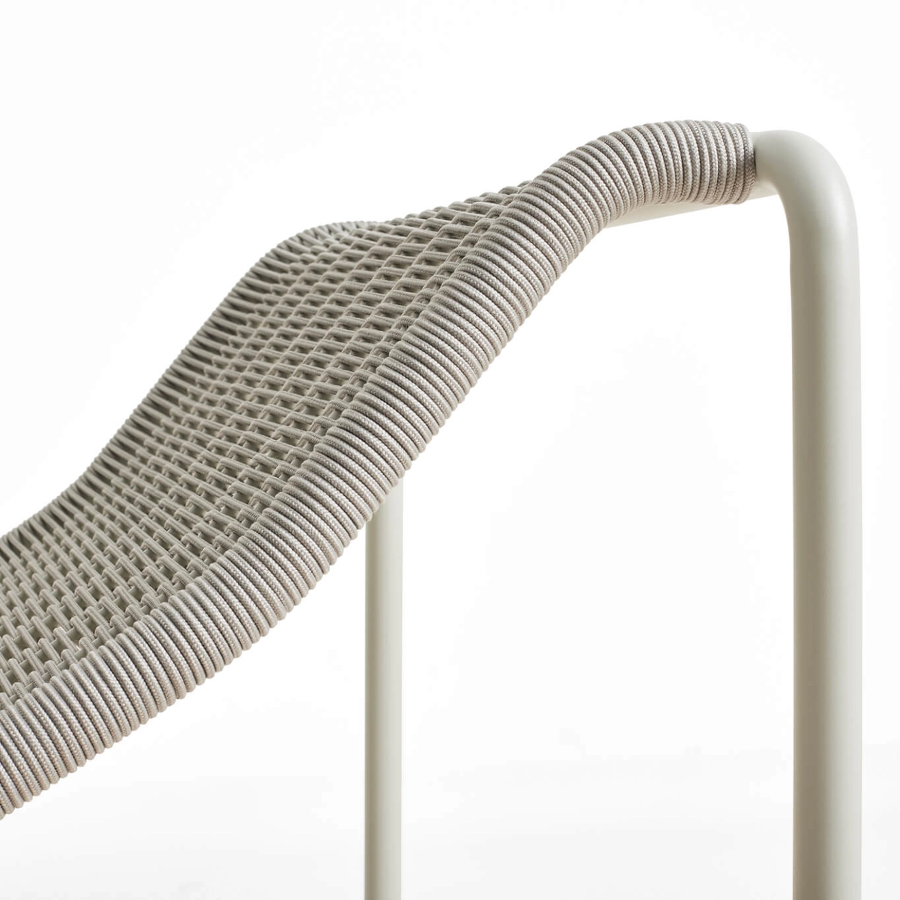 Unie par un principe commun de géométrie symétrique, la collection de mobilier d'extérieur Palissade Cord a été pensée pour s’intégrer avec élégance aussi bien dans des cadres naturels qu'urbains. La chaise longue Palissade Cord adopte le même langage esthétique que la collection originale, tout en y ajoutant une touche plus douce, sans compromettre la simplicité visuelle et la solidité emblématique de Palissade Cord. Son assise inclinée, confectionnée en cordon de polyester recyclé tissé à la main, s’harmonise parfaitement avec sa structure en acier revêtu de poudre pour garantir confort et résistance. Grâce à son éventail de couleurs polyvalentes et à son design intemporel, cette chaise longue s’adapte parfaitement à différents environnements extérieurs, qu’il s’agisse de cafés, de parcs, de jardins, de terrasses ou de balcons.