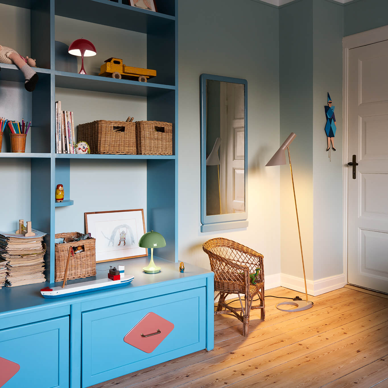 Né en 1926 à Gamtofte, au Danemark, Verner Panton fréquente l’école technique à Odense puis fait des études d’architecture à l’Académie royale des Beaux-Arts à Copenhague. Verner Panton est employé dans le cabinet d'architecture d‘Arne Jacobsen et fonde, en 1955, son propre studio d'architecture et de design. Les meubles de Verner Panton basés sur des formes géométriques, fabriqués par la société « Plus-linje » lui valent pour la première fois l’attention publique. La prédilection de Verner Panton pour les couleurs vives et les formes géométriques se manifeste dans ses nombreuses créations textiles, tels que les coussins de la collection « Textiles of the 20th Century ». Ses aménagements intérieurs, visant à fondre dans une unité indivisible les meubles, luminaires, textiles et panneaux muraux, sont légendaires. La célèbre collaboration de Verner Panton avec Vitra commence au début des années 60. Il développe alors sa plus célèbre création, la chaise Panton, présentée en 1967. Il s’agit aussi du premier produit fabriqué par Vitra à son propre compte. Verner Panton meurt en 1998 à Copenhague. Considéré aujourd’hui comme l’un des maîtres les plus influents dans le monde du Design du XXème siècle, Verner Panton laisse derrière lui un style innovant et futuriste utilisant principalement le plastique aux couleurs vives et privilégiant les formes généreuses et atypiques, comme ses iconiques luminaires édités parVerpan. Aujourd’hui, les iconiques designs de Verner Panton sont toujours très demandés.