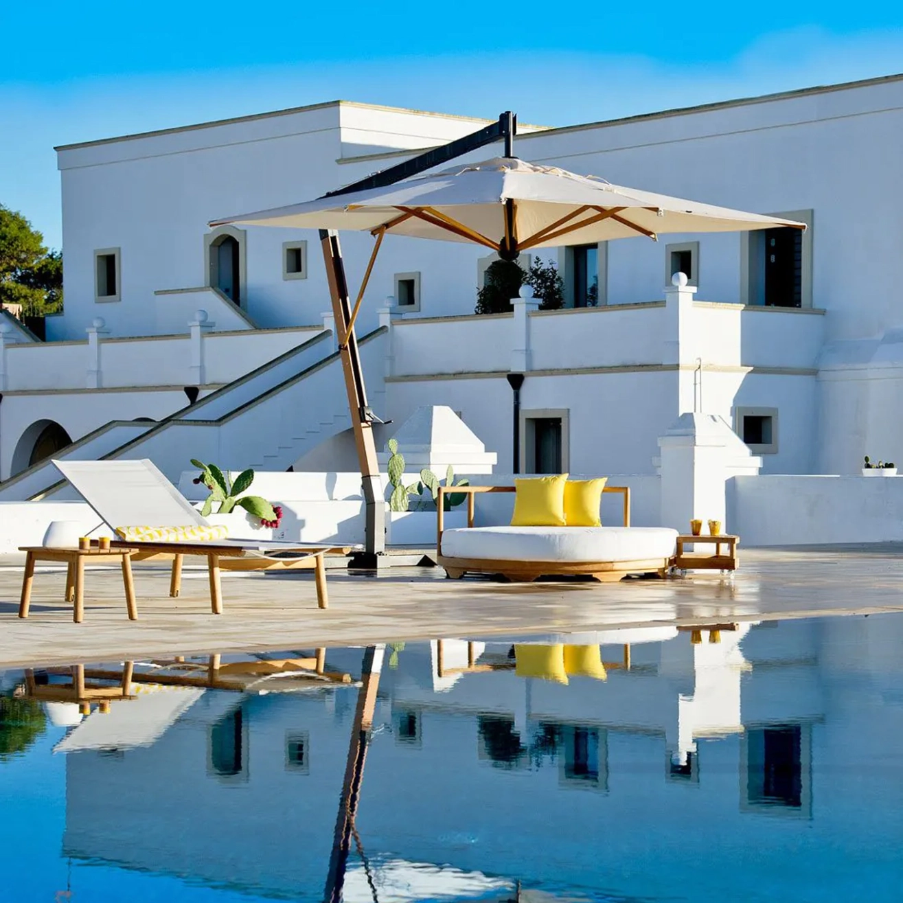 Salento de Unopiù est un grand parasol carré avec mât latéral en aluminium. Il est doté d’une ouverture manuelle par treuil. Avec sa structure disponible en plusieurs finition, le parasol Salento offre une esthétique épurée qui s'intègre harmonieusement dans divers environnements, qu'il s'agisse d'une terrasse urbaine ou d'un jardin luxuriant. ... En savoir plus
