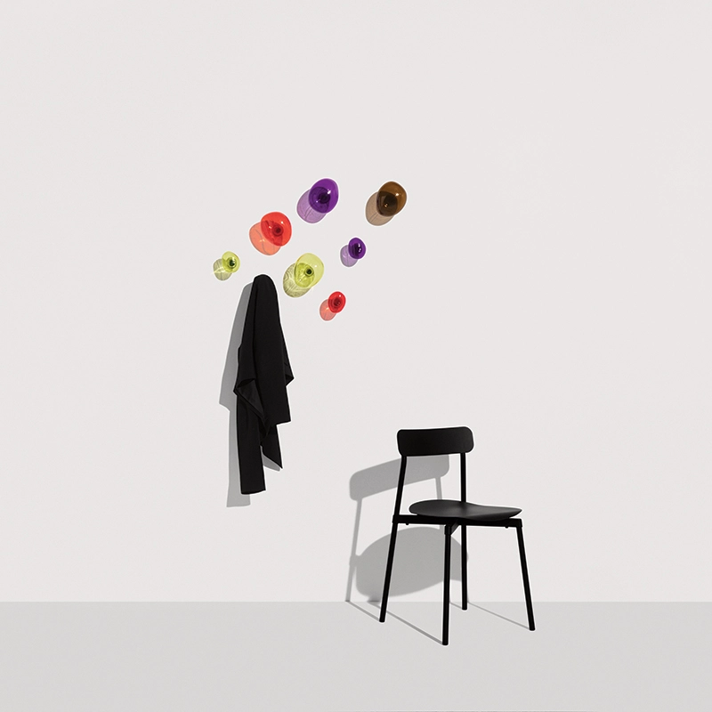 Dessinée par le duo Vaulot & Dyèvre, Bubble est une série de patères en verre qui ressemblent à des bulles de savon figées pour toujours. Le verre teinté opère cette métamorphose en apportant la dimension volatile de l'objet. Le seul point d'ancrage se trouve au contact du mur où une fixation solide permet d'accrocher très simplement la patère dans l'entrée ou la chambre. Editées par la maison d'édition française Petite Friture, elles sont disponibles en deux tailles et se déclinent en plusieurs coloris.