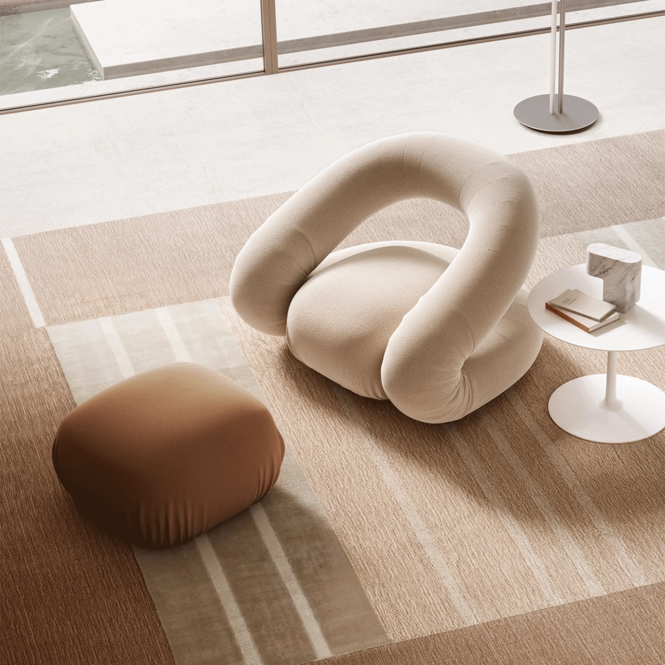 Le fauteuil à base fixe et pivotante Peggy, conçu par Gio Tirotto et édité par MDF Italia, incarne la tendance actuelle du mobilier qui valorise le confort et l'élégance de la "maison douce". Avec son design enveloppant et ses courbes douces, il procure un sentiment de sécurité et de cocooning tout en s'éloignant des formes traditionnelles pour devenir une pièce iconique à la fois moderne et intemporelle. La structure en acier tubulaire, associée à une mousse polyuréthane recyclée, offre à Peggy légèreté et confort. Composé de deux éléments essentiels, une base, un dossier et un siège, fixés par un système de montage simple, ce fauteuil se distingue par sa facilité de démontage et son aspect fonctionnel. Sa housse en tissu non amovible assure une finition lisse et épurée, tout en apportant un agréable toucher. Le fauteuil Peggy est une véritable déclaration de design, fusionnant confort, simplicité et innovation.