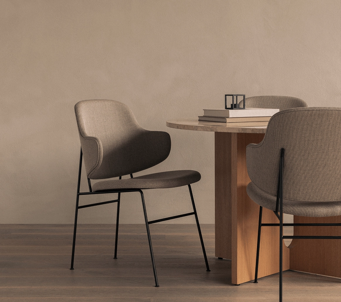 La chaise PENGUIN Re-Wool 218 incarne l’élégance moderniste revisitée par Audo Copenhagen, où la pureté de la ligne rencontre un confort subtilement enveloppant. Son dossier courbé emblématique, véritable signature visuelle, dessine une silhouette fluide et graphique qui épouse naturellement le corps, tandis que l’assise habillée du textile Re-Wool 218 apporte une richesse tactile et une profondeur nuancée, renforçant la sensation de qualité et de durabilité. Pensée pour s’intégrer aussi bien dans une salle à manger résidentielle haut de gamme que dans un restaurant, une salle de réunion ou un projet hôtelier sophistiqué, la PENGUIN conjugue esthétique affirmée et confort d’usage. Le revêtement Re-Wool 218, par sa texture dense et chaleureuse, crée un dialogue harmonieux avec des tables en bois, des plateaux minéraux ou des environnements plus contemporains aux lignes épurées. L’équilibre entre la structure précise et la douceur du textile traduit une approche où forme et fonction s’accordent avec évidence. Son dessin repose sur une maîtrise des courbes et des proportions, offrant une assise ergonomique adaptée à des usages prolongés tout en conservant une grande légèreté visuelle. La chaise PENGUIN Re-Wool 218 se distingue par l’iconicité de son dossier sculptural, par le confort enveloppant de son revêtement, par son adaptabilité à des projets résidentiels ou contract exigeants, et par sa capacité à devenir une pièce signature au cœur d’intérieurs contemporains raffinés.
