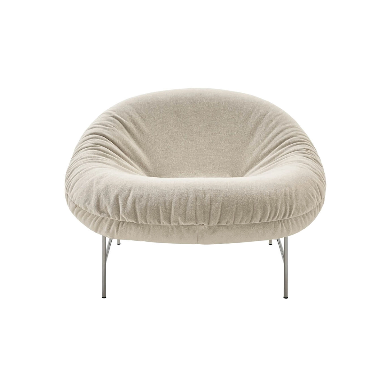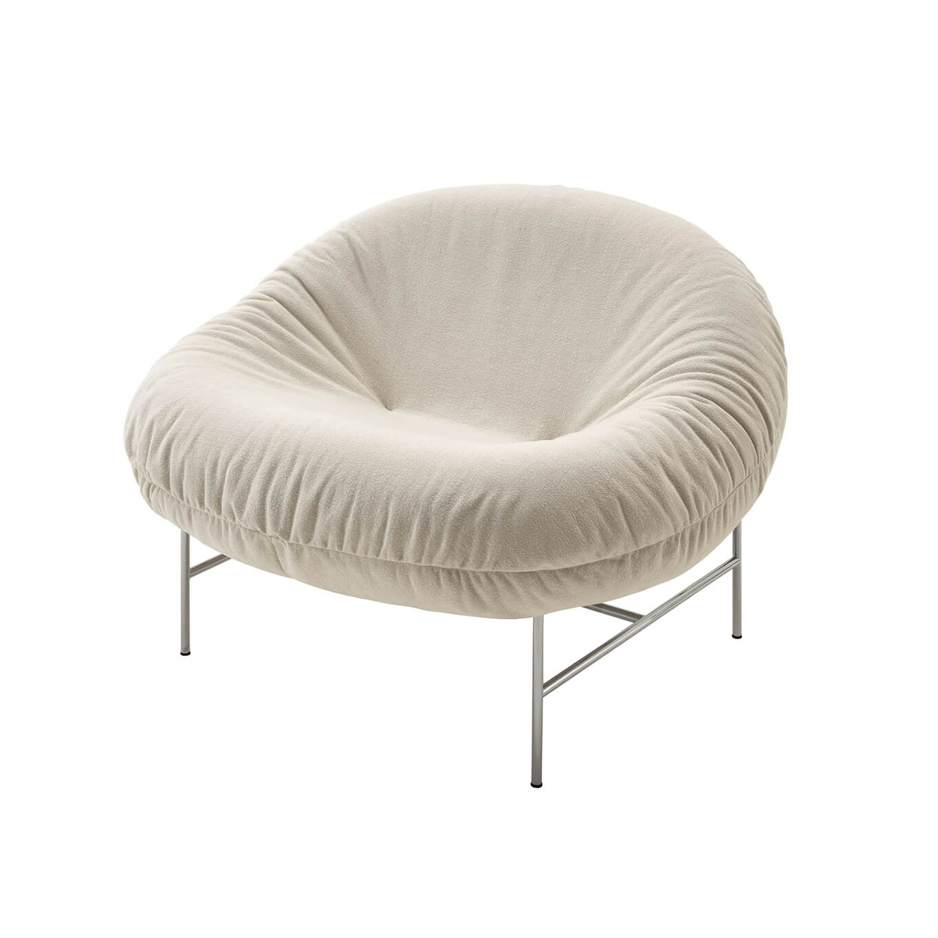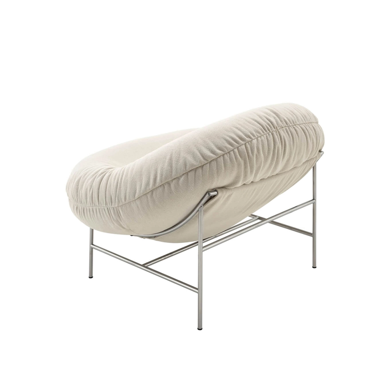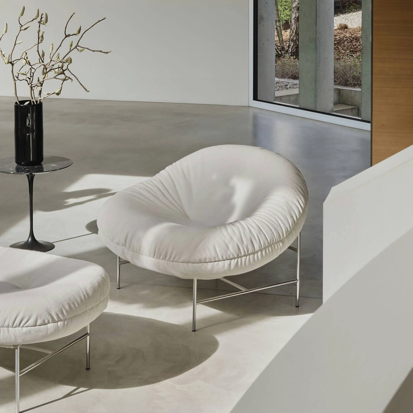 Le designer et directeur artistique Willo Perron efface les frontières entre fauteuil, canapé et lit avec son Perron Bun Lounge Chair conçu pour Knoll. Son assise généreuse et moelleuse invite à adopter toutes sortes de positions confortables pour s’y lover ou s’y pelotonner, tandis que les courbes élégantes de sa base en suspension prolongent cette sensation de détente absolue. Véritable cocon accueillant, ce fauteuil incarne une esthétique décontractée. Comme un nuage moelleux flottant au-dessus d’une sculpture. Il trouve facilement sa place dans une grande variété d’intérieurs. La rondeur enveloppante du coussin, semblable à un matelas, séduit autant visuellement que physiquement. Il transforme l’atmosphère d’un espace sans dominer ce qui l’entoure. Peut être associé au Perron Bun Ottoman (vendu séparément).