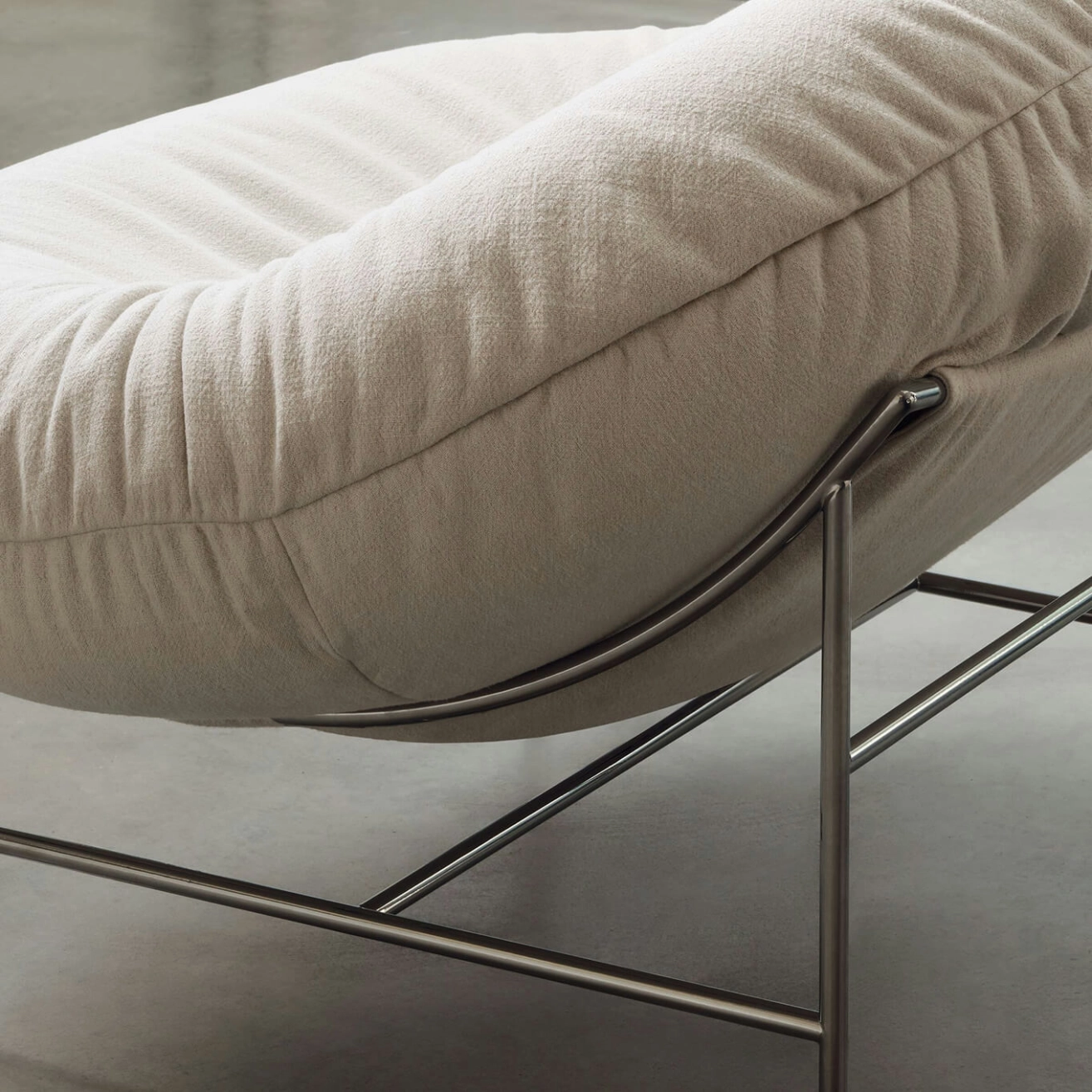 Structure en métal finition chrome, rembourrage en mousse polyuréthane souple de différentes densités, revêtement non déhoussable en tissu