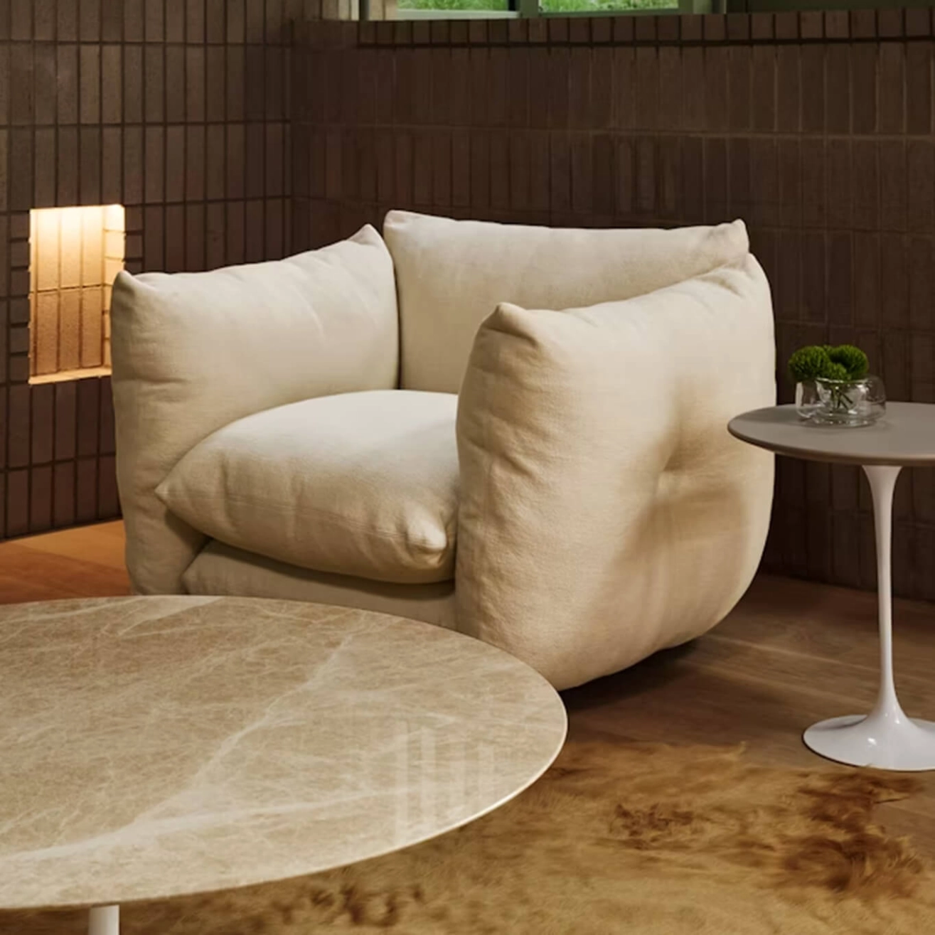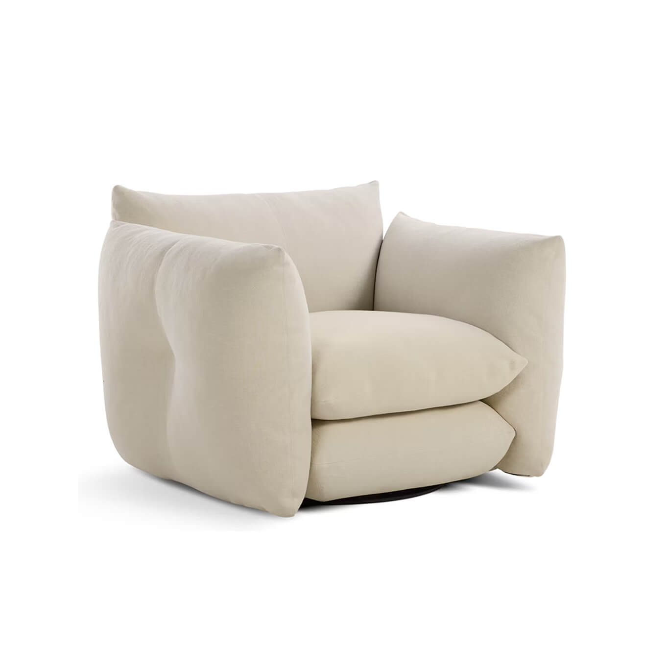 Proposé par Knoll, le fauteuil Perron Pillo remet en question les idées reçues. Ce qui ressemble à une pile indépendante de coussins surdimensionnés est en réalité conçu pour offrir un soutien confortable, que ce soit pour s’asseoir, se lover ou s’étirer. Créer un siège à la fois évocateur et accueillant faisait partie intégrante de l’approche du designer Willo Perron. « Tout ce que je fais comporte une touche d’humour », explique-t-il. Les coussins supérieurs du fauteuil Perron Pillo, confortables et soutenants, sont attachés avec des anneaux en D. Un système de bascule situé sous chaque assise maintient les modules solidement assemblés. Parfait complément du canapé de la même collection, le fauteuil Perron Pillo Knoll est disponible avec une base fixe ou pivotante.