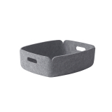 La série Restore de Mika Tolvanen de Muuto s'agrandit avec le Restore Tray, un panier aux dimensions réduites qui peut servir à la fois de rangement et de plateau. 100% écologique, il est réalisé en feutre produit à partir de bouteilles en plastique. La finition de Restore confère un certain raffinement à l'objet qui s'intègre aussi bien dans un salon pour les magazines ou les objets qui trainent, que dans un bureau pour ranger des papiers.