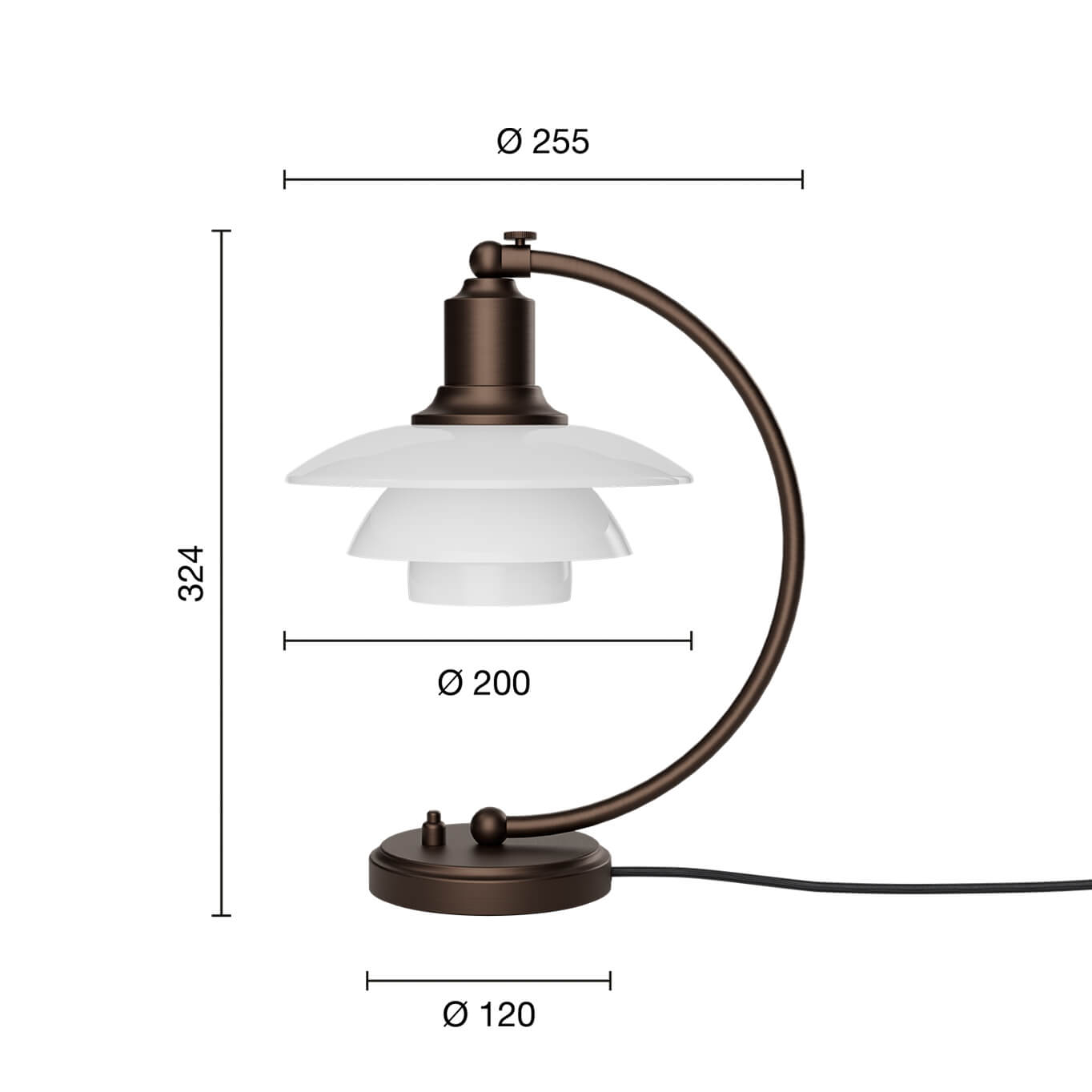 Avec son cadre en laiton bruni laqué, la lampe de table conservera son aspect et son caractère uniques. Associée à la courbure caractéristique de son pied, la lampe de table PH 2/2 Luna en laiton bruni opale présente une expression caractéristique mettant en valeur aussi bien les intérieurs modernes que classiques par son élégance discrète. Cette lampe Louis Poulsen en édition limitée crée un éclairage parfait et une atmosphère luxueuse.