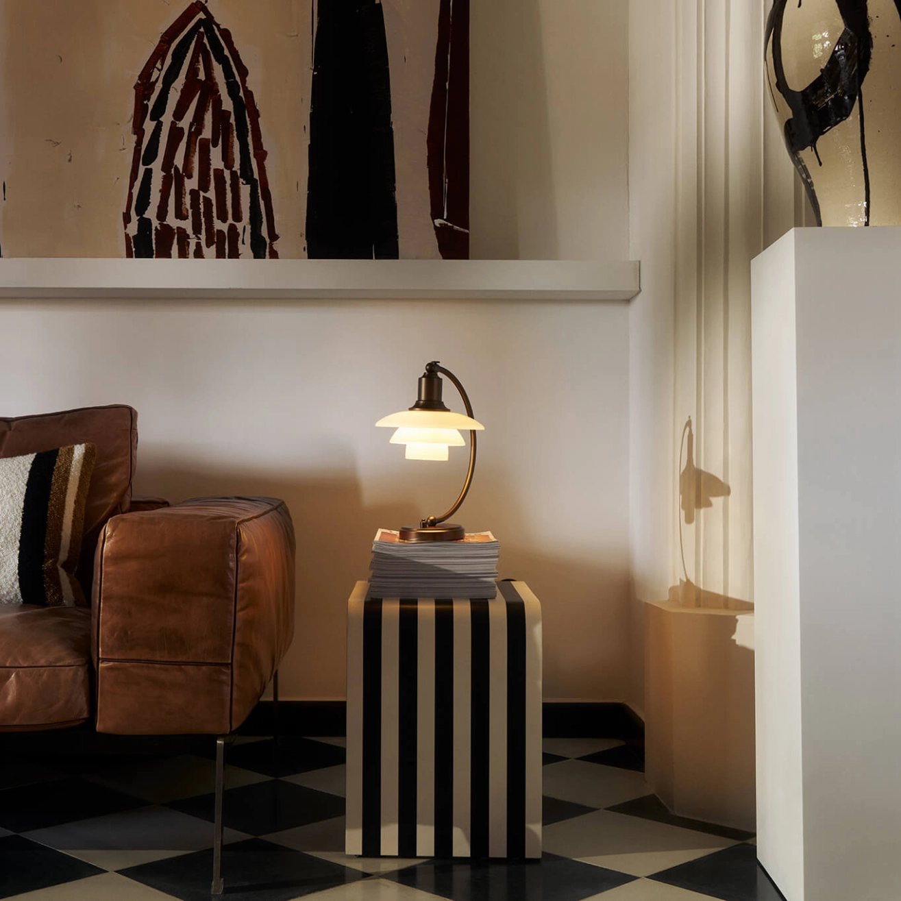 Né en 1894 au Danemark, Poul Henningsen étudie l’architecture à l’école Polytechnique de 1915 à 1917. Il étudie à l’École technique de Frederiksberg, au Danemark, de 1911 à 1914, puis à l’Université technique de Copenhague de 1914 à 1917, sans jamais être diplômé en architecture. En 1920, le designer commence son activité d’architecte en free-lance mais travaille également comme journaliste en écrivant de nombreux articles pour divers journaux. Ecrivain et designer, il est une figure emblématique de la vie culturelle danoise pendant les deux guerres mondiales. Il travaille par la suite pour le célèbre éditeur danois Louis Poulsen et rencontre un rapide succès international grâce aux lampes PH, exposées pour la première fois en 1925 à l’exposition internationale des Arts Décoratifs et Industriels Modernes de Paris. Poul Henningsen a conçu des lampes indémodables dont l’esthétisme séduit toujours les aficionados de design vintage. Les lampes PH sont toutes cerclées de plusieurs abat-jours en métal ou en verre qui jouent le rôle de réflecteurs garantissant une lumière diffuse à la fois fonctionnelle et douce. La conception de ces luminaires est telle qu’il est impossible de voir directement la source lumineuse, ce qui les rend totalement non éblouissants. La technique qu’il a développée fait de lui l’un des plus grands designers scandinaves du 20ème siècle.