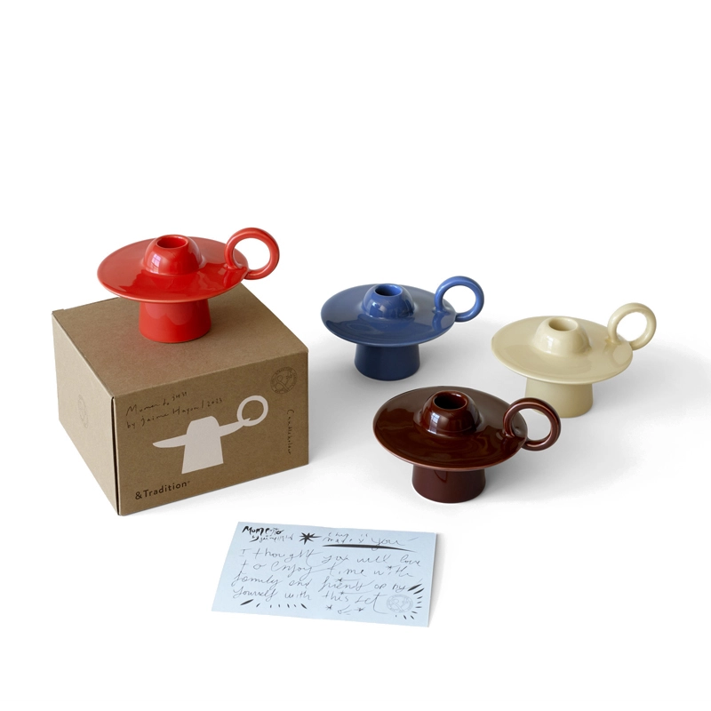 And Tradition édite la collection Momento, créée par l'artiste et designer de renom Jaime Hayon. Momento — "moment" en espagnol – est une collection ludique d'articles de décoration intérieure conçus pour nous encourager à ralentir et à savourer les plaisirs simples de la vie.  « Momento a quelque chose à voir avec l'amour, il a quelque chose à voir avec cette idée de s'accorder un petit moment de plaisir. Ce sont des objets qui font déjà partie de votre vie - ce sont des objets que vous voulez avoir près de vous », explique Hayon.  Momento incarne la simplicité et la polyvalence la plus totale et à chaque instant, elle enrichit tous les petits rituels du quotidien. La collection Momento comprend une cruche, un bougeoir et deux vases ; chacun est issu d’une réflexion qui combine le langage sculptural et les couleurs signatures de Hayon. Le bougeoir Momento rend hommage à la forme classique du bougeoir, historiquement conçu pour être transporté d'une pièce à l'autre, avec une esthétique à la fois nostalgique et contemporaine. Coulé en barbotine et émaillé avec précision par des artisans au Portugal, le bougeoir Momento est disponible en quatre couleurs inspirées des œuvres d'art du designer Hayon. Conçus pour ajouter une touche de couleur dans les environnements résidentiels et d'accueil, les bougeoir Momento s'adaptent à la taille commune des bougies coniques et créent une ambiance chaleureuse et conviviale lorsqu'ils sont allumés.
