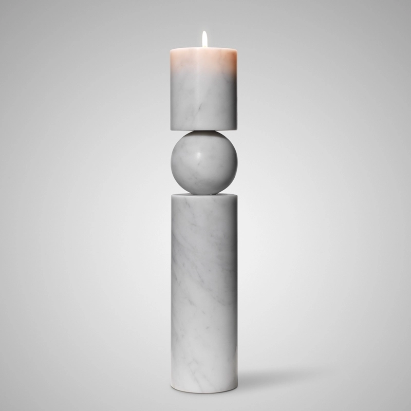 Créé par Lee Broom, Fulcrum est un chandelier sculptural et monolithique dont la tige semble s'équilibrer sur une sphère centrale. En marbre de Carrare ou Marquina, cette réinterprétation du chandelier classique se démarque par ses formes essentielles et son élégance moderne. Disponible en deux tailles, le bougeoir se décline aussi en version verre transparent.