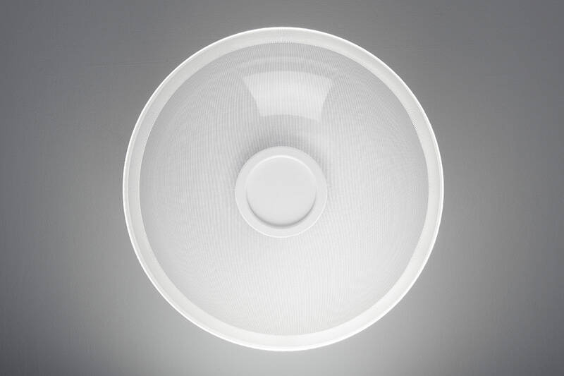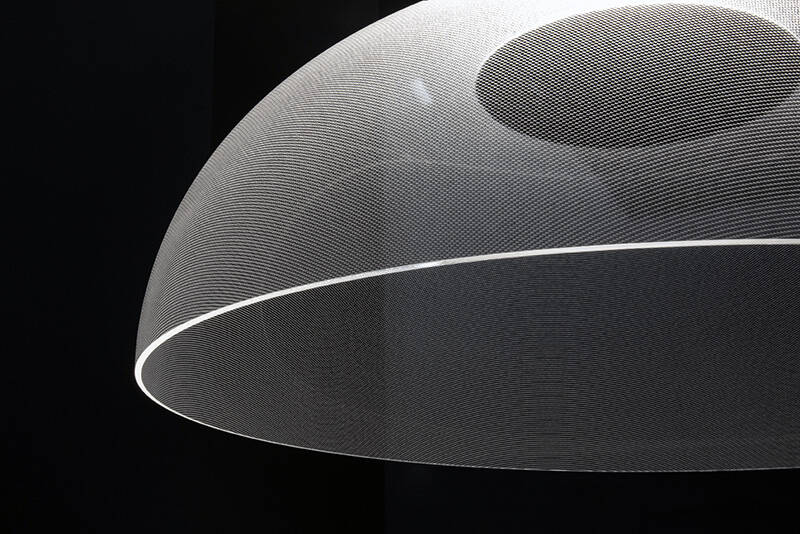 Lorsqu'il est éteint, le plafonnier Demì, est une grande coupole transparente. Lorsque Demì est allumé, grâce à la technologie exclusive OptiLight™, le bord inférieur et les milliers de micro incisions au laser de la surface diffusent une lumière douce et homogène. Celle-ci est générée par une source LED invisible située dans l'anneau du grand trou supérieur qui, comme dans l'ancien Panthéon, est la source de lumière. Le plafonnier Demì a été créé en 2019 par le designer Mirco Crosatto pour Stilnovo.