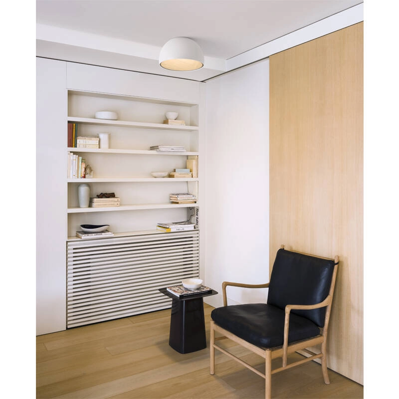 Créée par Ramos & Bassols pour Vibia, Duo est une collection de luminaires tout en contrastes, qui s’intègre de façon naturelle à tout type d’environnement. La combinaison structurelle des plafonniers Duo présente une grande versatilité et un agencement visuel saisissant, entre un intérieur texturé et organique en chêne veiné et une coque externe plus délicate. La silhouette légèrement galbée du luminaire évoque une certaine sensibilité enveloppante et apaisante.