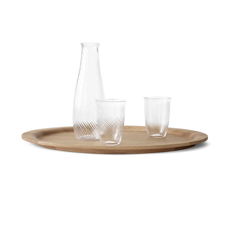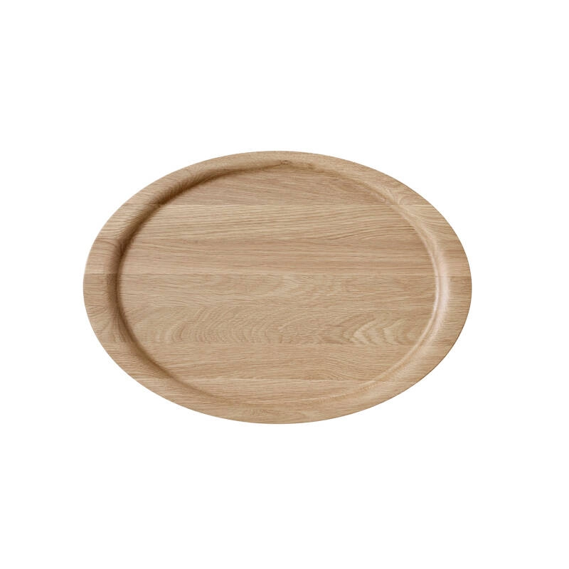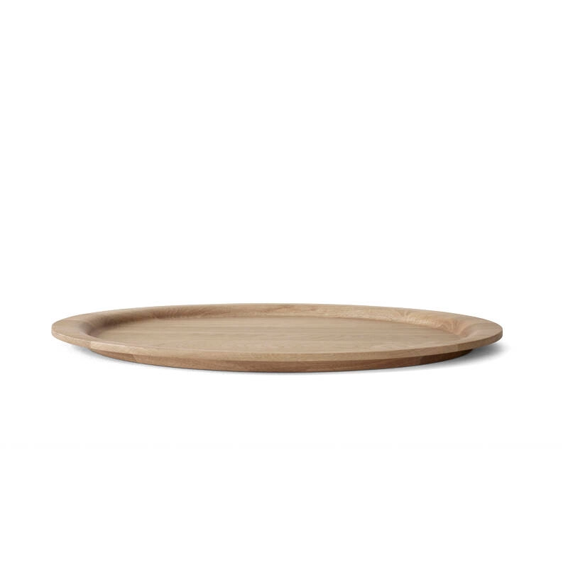 Taillé dans du bois massif, ce plateau légèrement incurvé présente une forme fluide et des veines naturelles qui traversent le bois. Il fait partie de Collect, une collection de tissus d'ameublement et d'objets de maison magnifiquement conçus par Space Copenhagen pour And Tradition et se décline disponible en deux finitions : chêne laqué et noyer laqué.